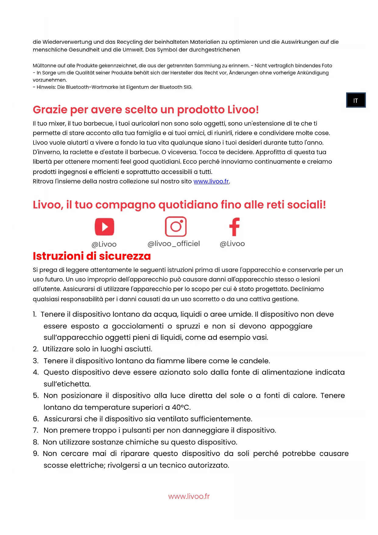 scosse elettriche; rivolgersi a un tecnico autorizzato. @livoo_officiel @Livoo @Livoo ITwww.livoo.fr