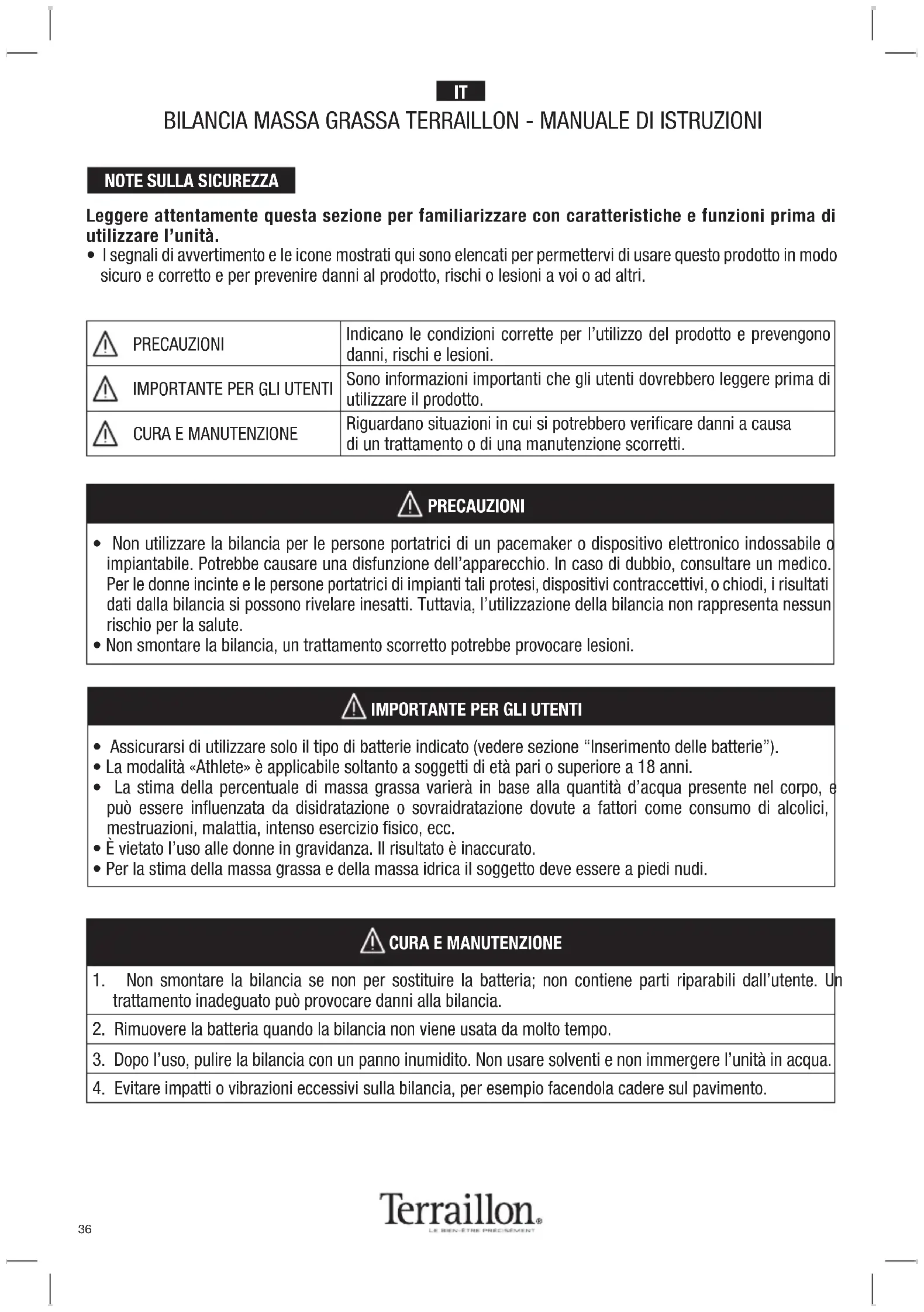 MANUALE UTENTE Regular Fit TERRAILLON