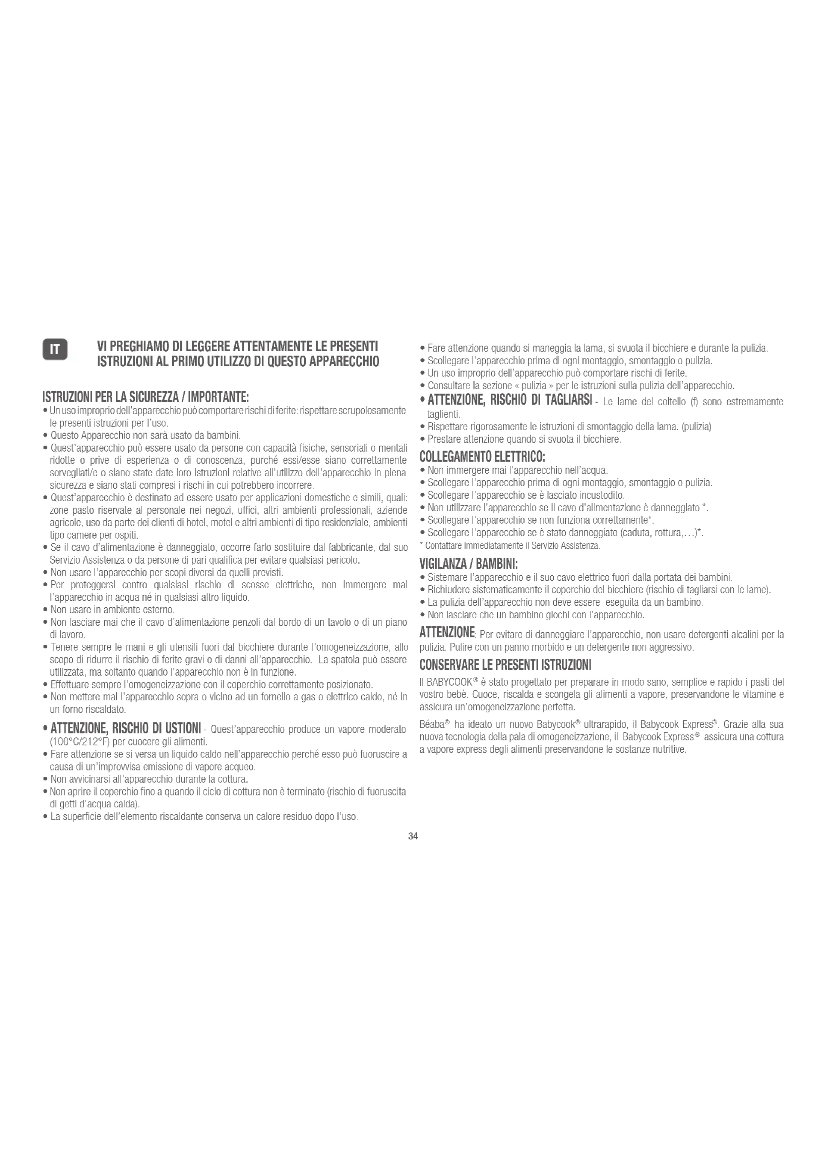- Un uso improprio dell’apparecchio può comportare rischi di ferite: rispettare scrupolosamente le presenti istruzioni per l’uso.