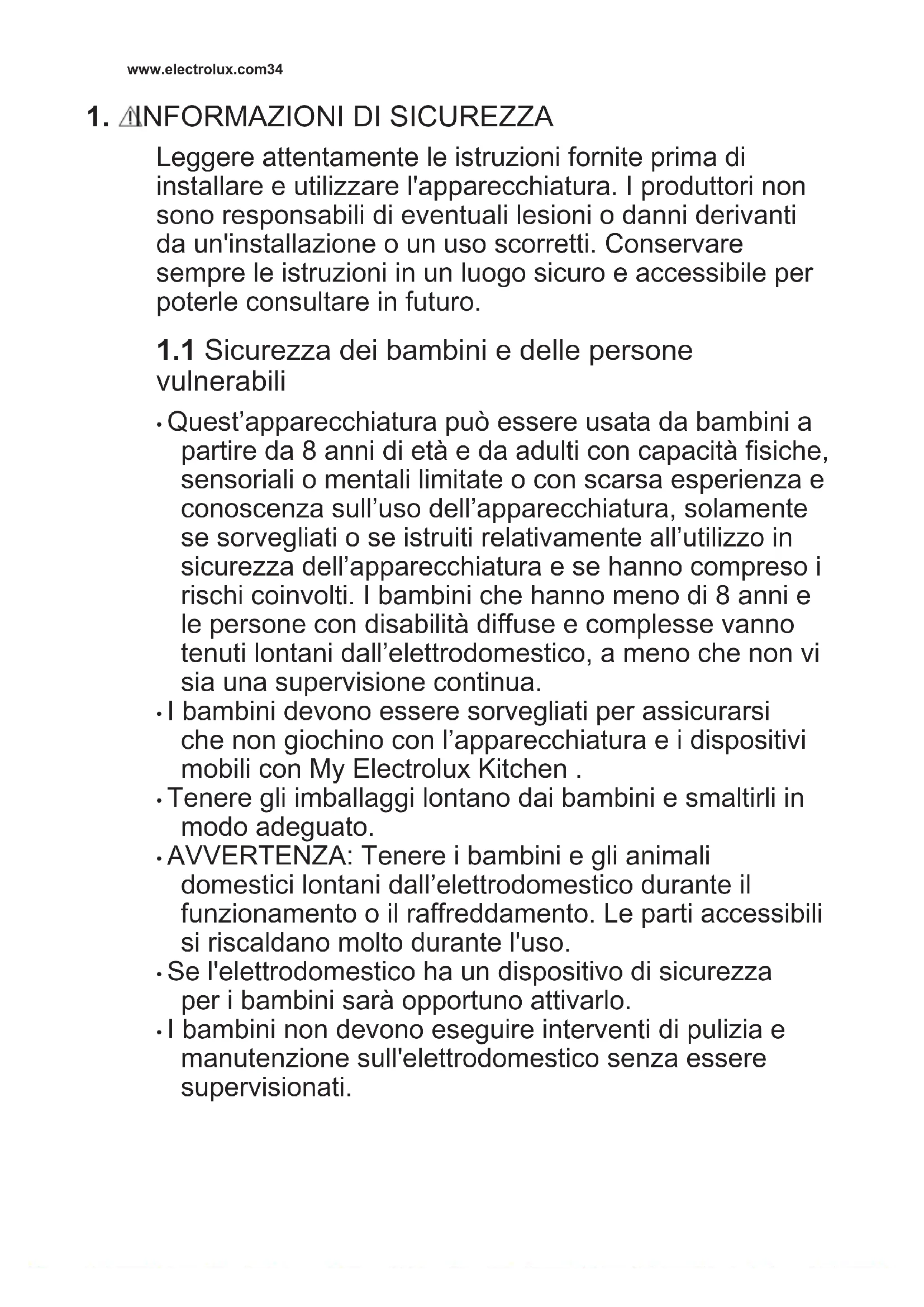 - I bambini non devono eseguire interventi di pulizia e manutenzione sull'elettrodomestico senza essere supervisionati. www.electrolux.com341.2 Avvertenze di sicurezza generali