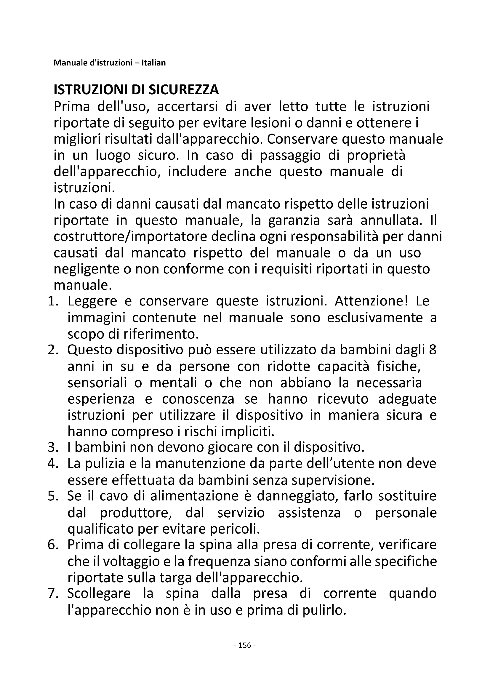 - -- 156 - Manuale d'istruzioni – Italian