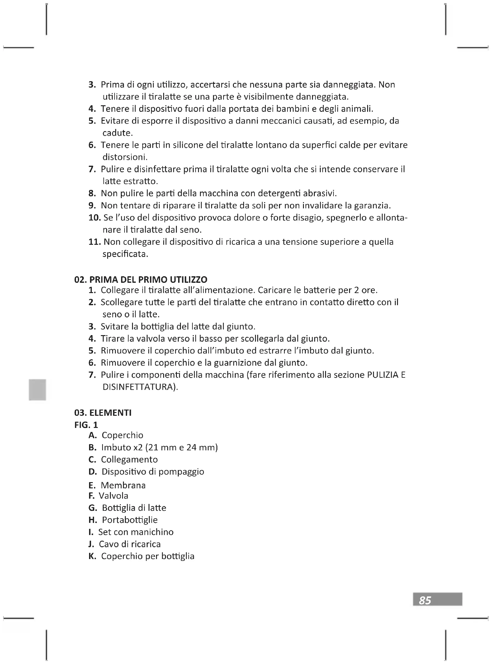 a. Sciacquare tue le par staccate (che sono entrate in contao con il seno e il lae) in acqua fredda per eliminare i residui di lae e i deposi che si sono forma. b. Immergere in acqua calda e sapone per 5 minu, quindi lavare e risciacquare. c. Lasciare che le par si asciughino naturalmente. Conservare i pezzi asciu in un luogo fresco e asciuo quando non li si ulizza. FIG. 3.B
