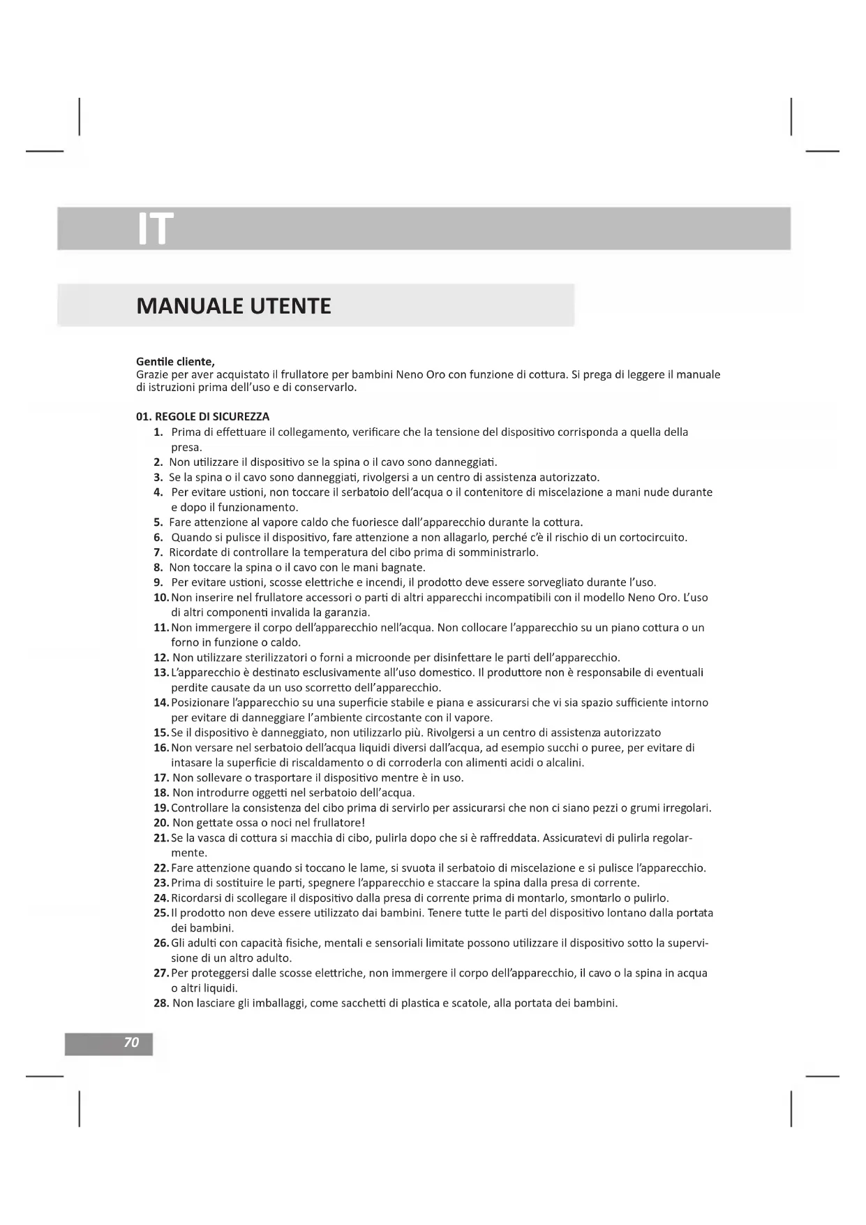 Genle cliente, Grazie per aver acquistato il frullatore per bambini Neno Oro con funzione di coura. Si prega di leggere il manuale di istruzioni prima dell’uso e di conservarlo.