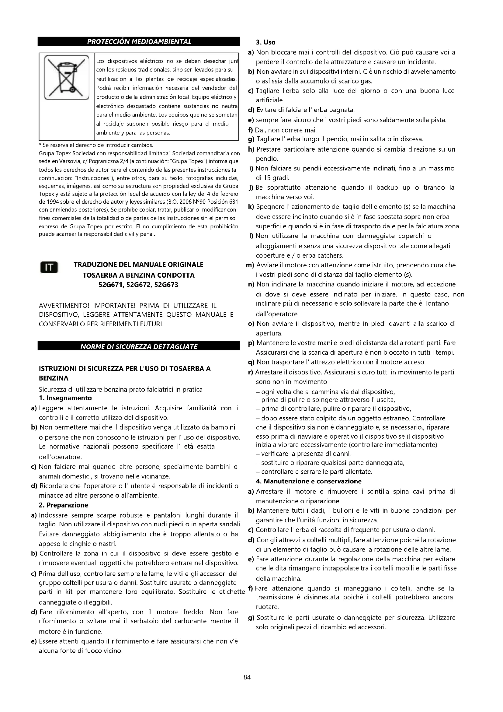 - Ci si riserva il diritto di effettuare modifiche. La „Grupa Topex Spółka z ograniczoną odpowiedzialnością” Spółka komandytowa con sede a Varsavia, ul. Pograniczna 2/4 (detta di seguito: „ Grupa Topex”) informa che tutti i diritti d’autore sul contenuto del presente manuale (detto di seguito: „Manuale”), che riguardano, tra l’altro, il testo, le fotografie, gli schemi e i disegni contenuti e anche la sua composizione, appartengono esclusivamente alla Grupa Topex sono protetti giuridicamente secondo la legge del 4 febbraio 1994, sul diritto d’autore e diritti connessi (Gazz. Uff. polacca del 2006 n. 90 posizione 631 con successive modifiche). La copia, l’elaborazione, la pubblicazione, la modifica a scopo commerciale, sia dell’intero Manuale che di singoli suoi elementi, senza il consenso scritto della Grupa Topex, sono severamente vietate e comportano responsabilità civile e penale.
