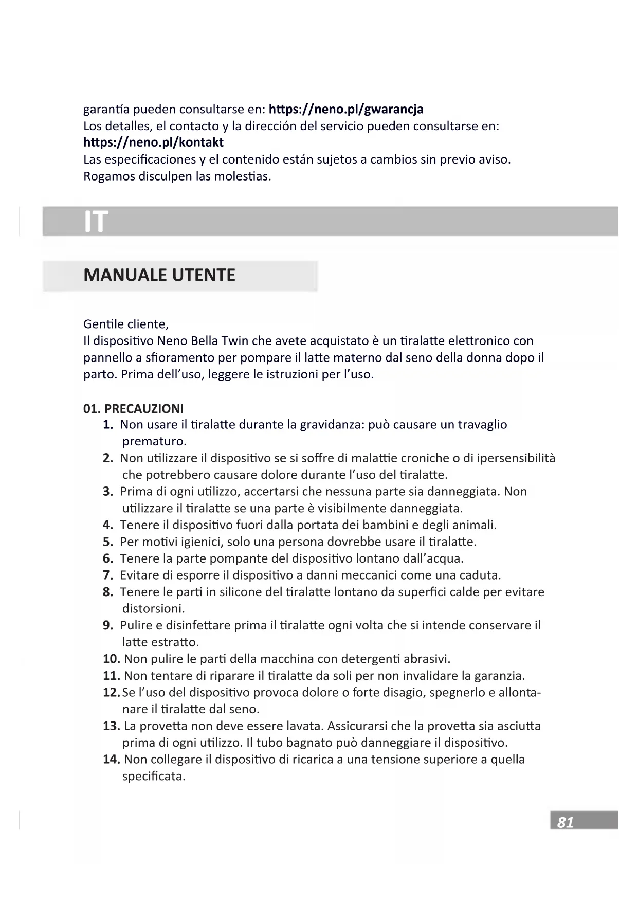 Bella Twin - Tiralatte Neno - Manuale utente e istruzioni gratuiti
