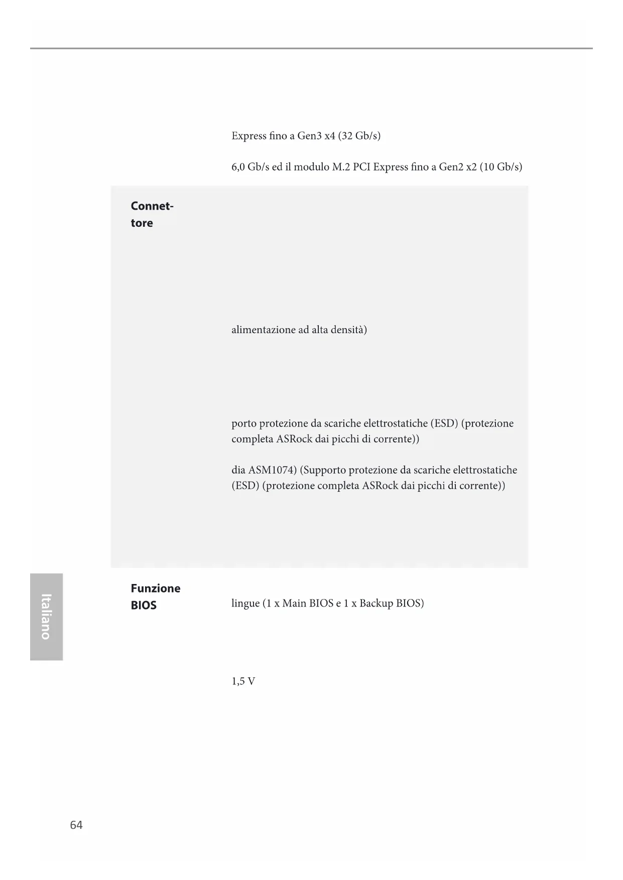 - Per informazioni dettagliate sul prodotto, visitare il nostro sito Web: http://www.asrock.com A causa della limitazione, l'eettiva dimensione della memoria può essere inferiore a 4 GB per riservare l'uso del sistema ai sistemi operativi di Windows® a 32 bit. I sistemi operativi Windows® a 64 bit non possiedono tali limitazioni. È possibile utilizzare la RAM XFast di ASRock per utilizzare la memoria che Windows® non può utilizzare.66 Italiano