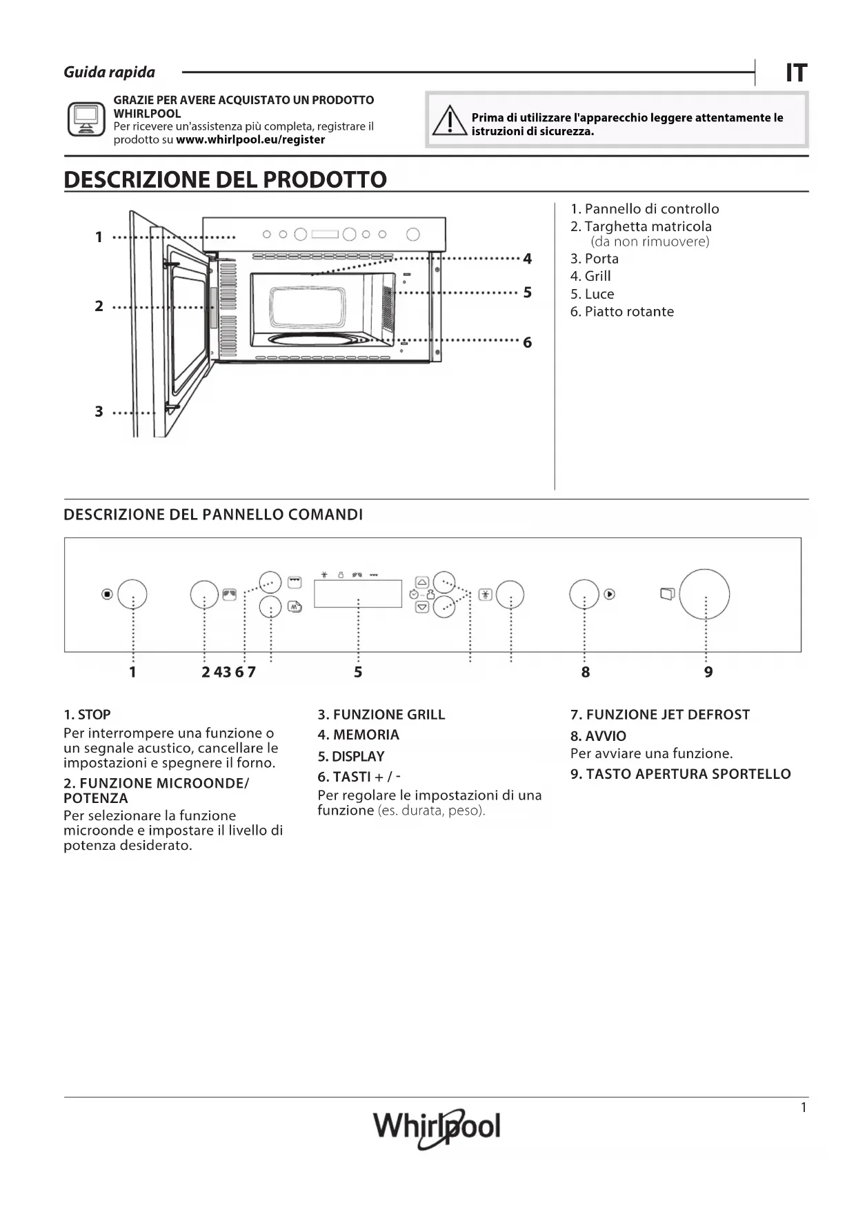 WHIRLPOOL Per ricevere un'assistenza più completa, registrare il prodotto su www . whirlpool . eu/ register Prima di utilizzare l'apparecchio leggere attentamente le istruzioni di sicurezza.