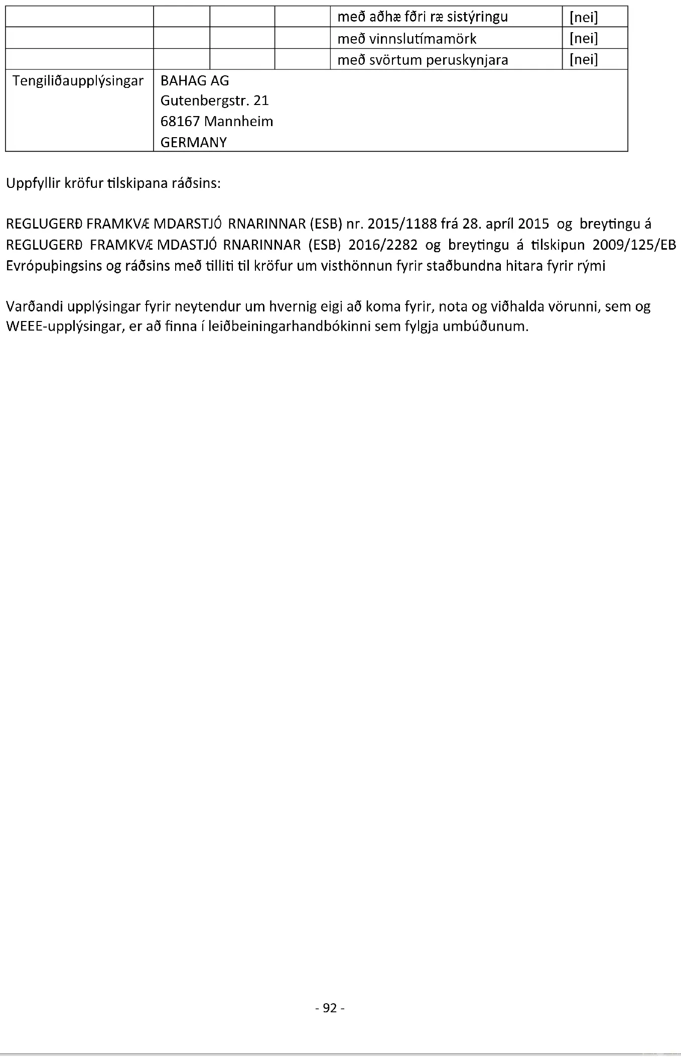 è conforme ai requisiti fissati dalle seguenti direttive: REGOLAMENTO (UE) N. 2015/1188 DELLA COMMISSIONE del 28 aprile 2015 e REGOLAMENTO (UE) N. 2016/2282 recante modalità di applicazione della direttiva 2009/125/CE del Parlamento europeo e del Consiglio in merito alle specifiche per la progettazione ecocompatibile degli apparecchi per il riscaldamento d'ambiente locale Per le informazioni destinate ai consumatori sulle modalità di installazione, utilizzo e manutenzione del prodotto e le informazioni RAEE, consultare il manuale di istruzioni incluso nella confezione.- 100 - Gebruiksaanwijzing – Dutch Dit product is alleen geschikt voor gebruik in goed geïsoleerde ruimtes of occasioneel gebruik. VEILIGHEIDSVOORSCHRIFTEN