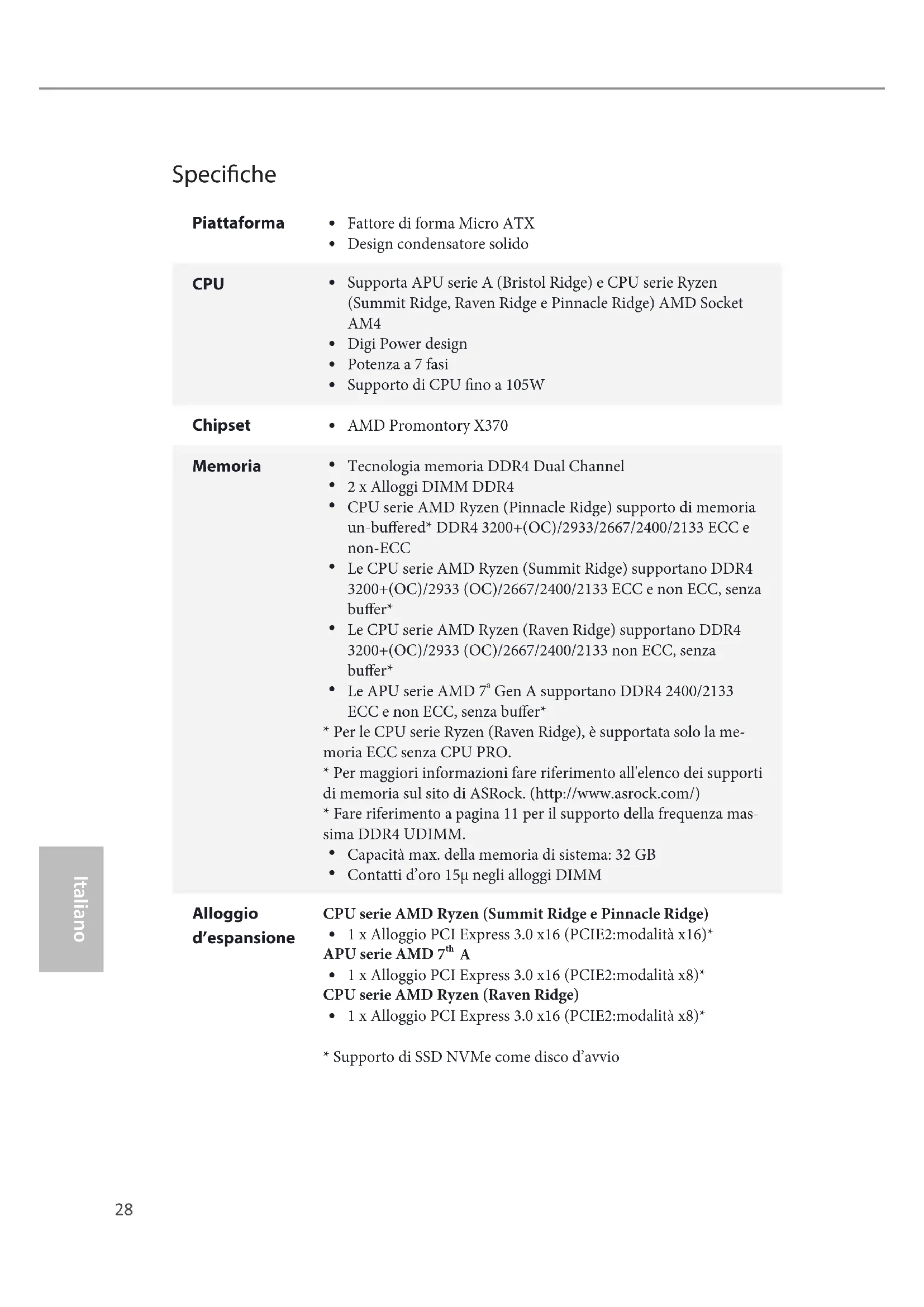 - Supporto di SSD NVMe come disco d’avvio29 Italiano X370M-HDV