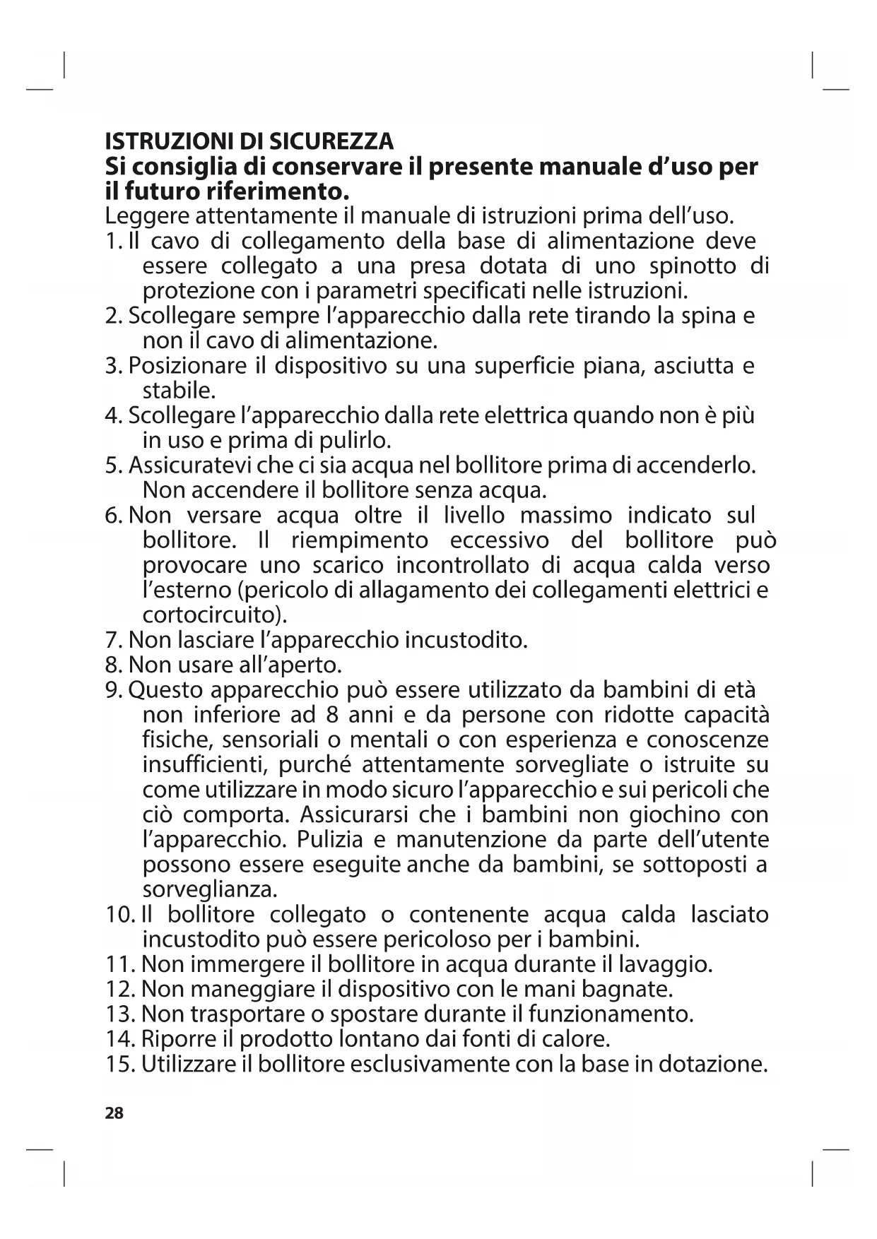 15. Utilizzare il bollitore esclusivamente con la base in dotazione.