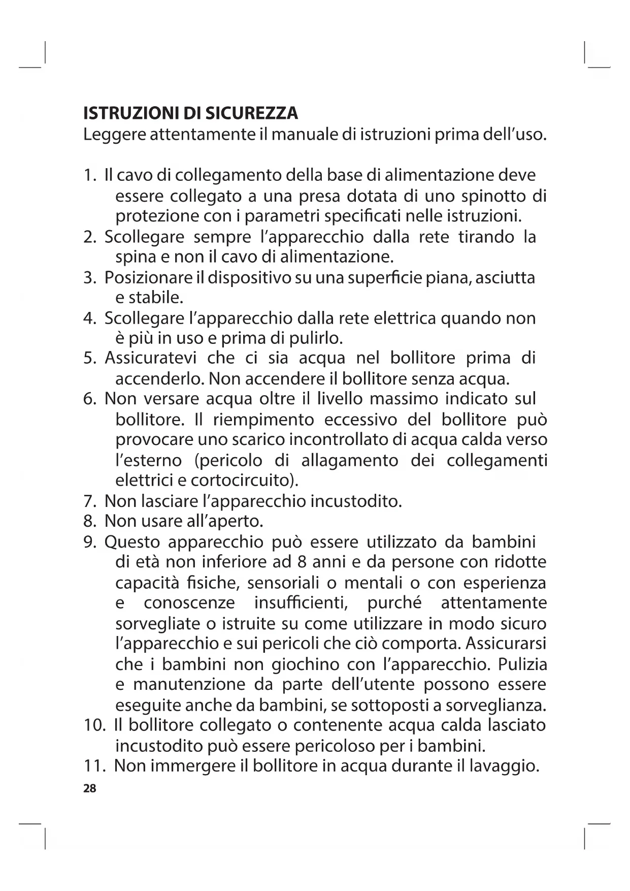 11. Non immergere il bollitore in acqua durante il lavaggio.29
