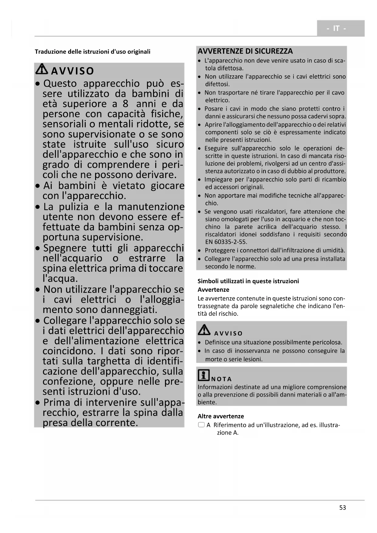 - IT - Traduzione delle istruzioni d'uso originali AVVISO