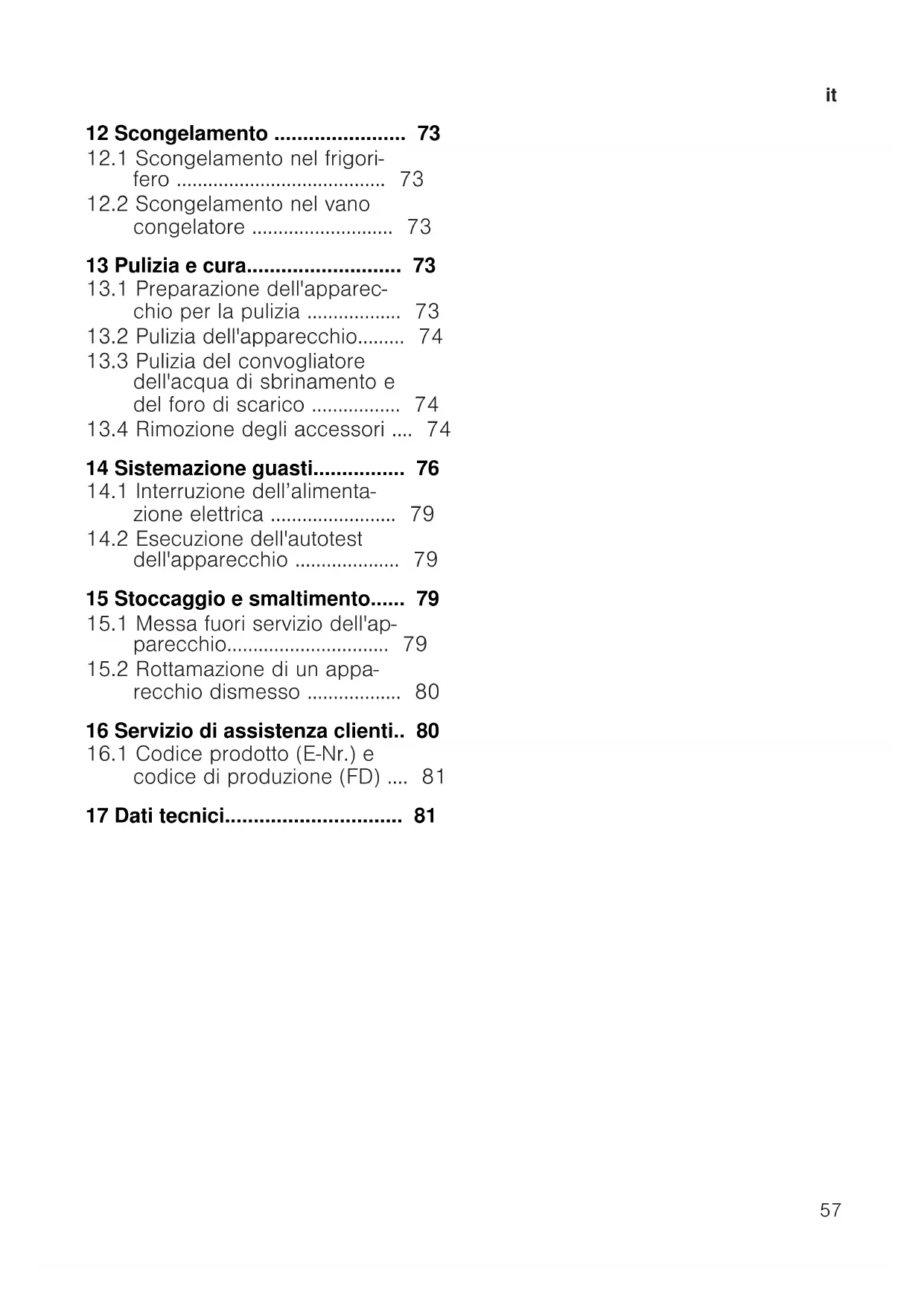 congelatore ........................... 73 13 Pulizia e cura...........................73