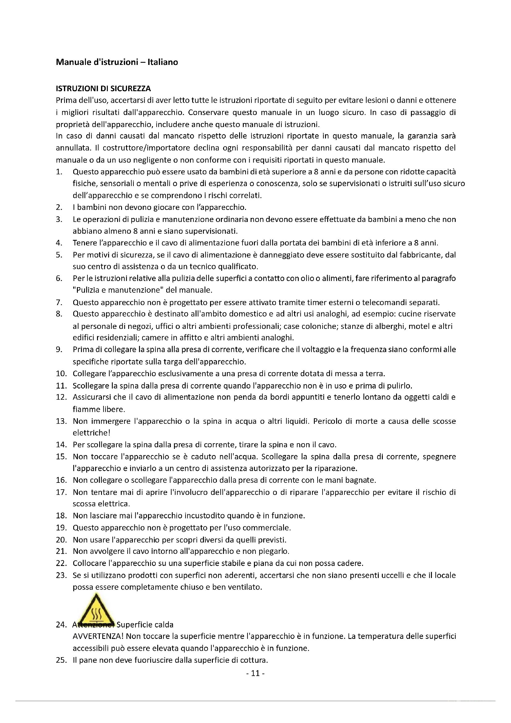 25. Il pane non deve fuoriuscire dalla superficie di cottura.- 12 -