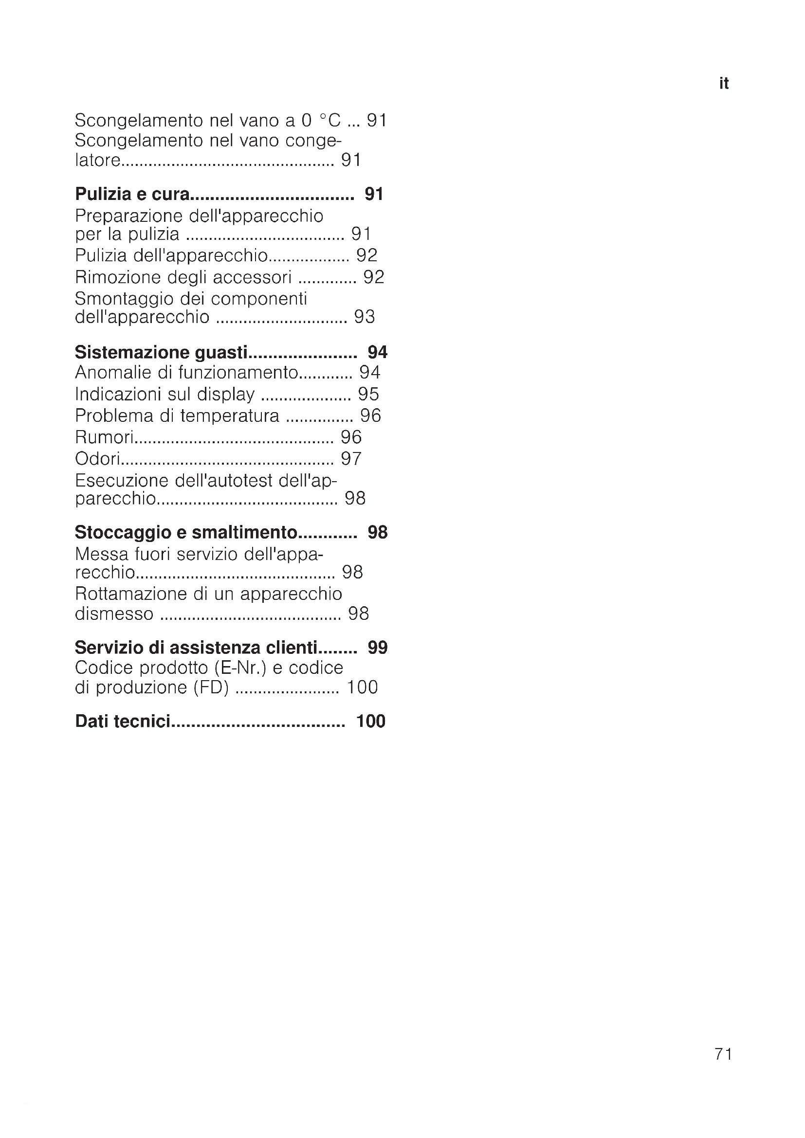 - Preparazione dell'apparecchio per la pulizia p. 91