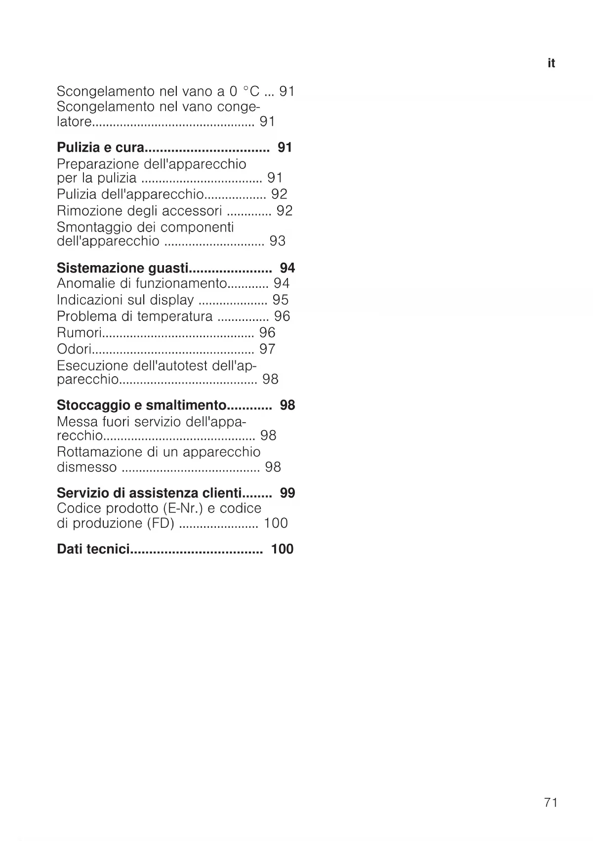 - Pulizia dell'apparecchio p. 92