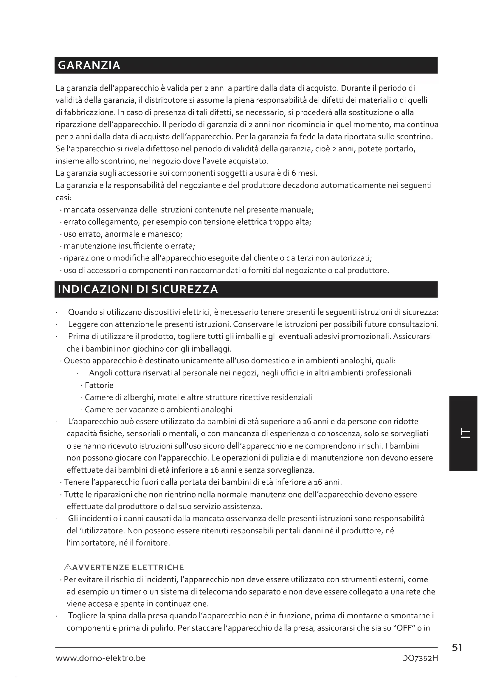MANUALE UTENTE DO7352H DOMO