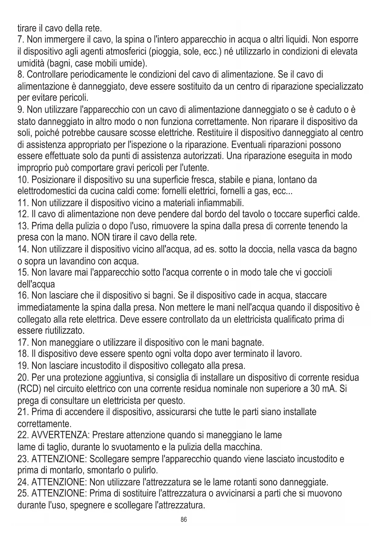 20. Per una protezione aggiuntiva, si consiglia di installare un dispositivo di corrente residua
