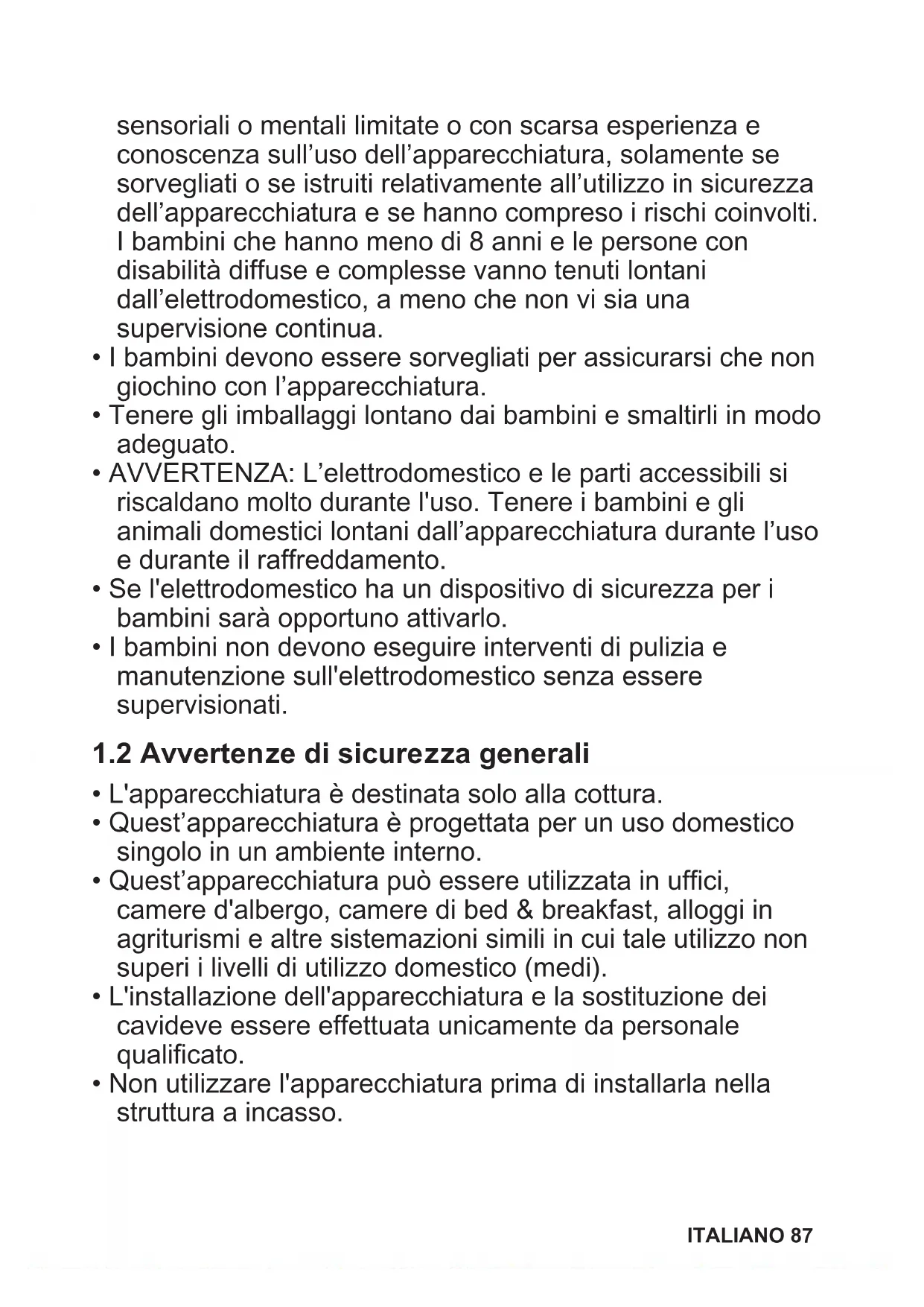 1.2 Avvertenze di sicurezza generali