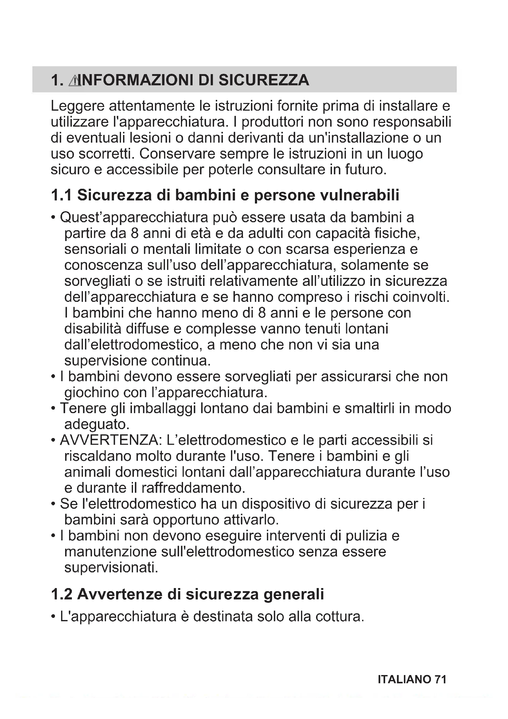 70 ITALIANO1. INFORMAZIONI DI SICUREZZA