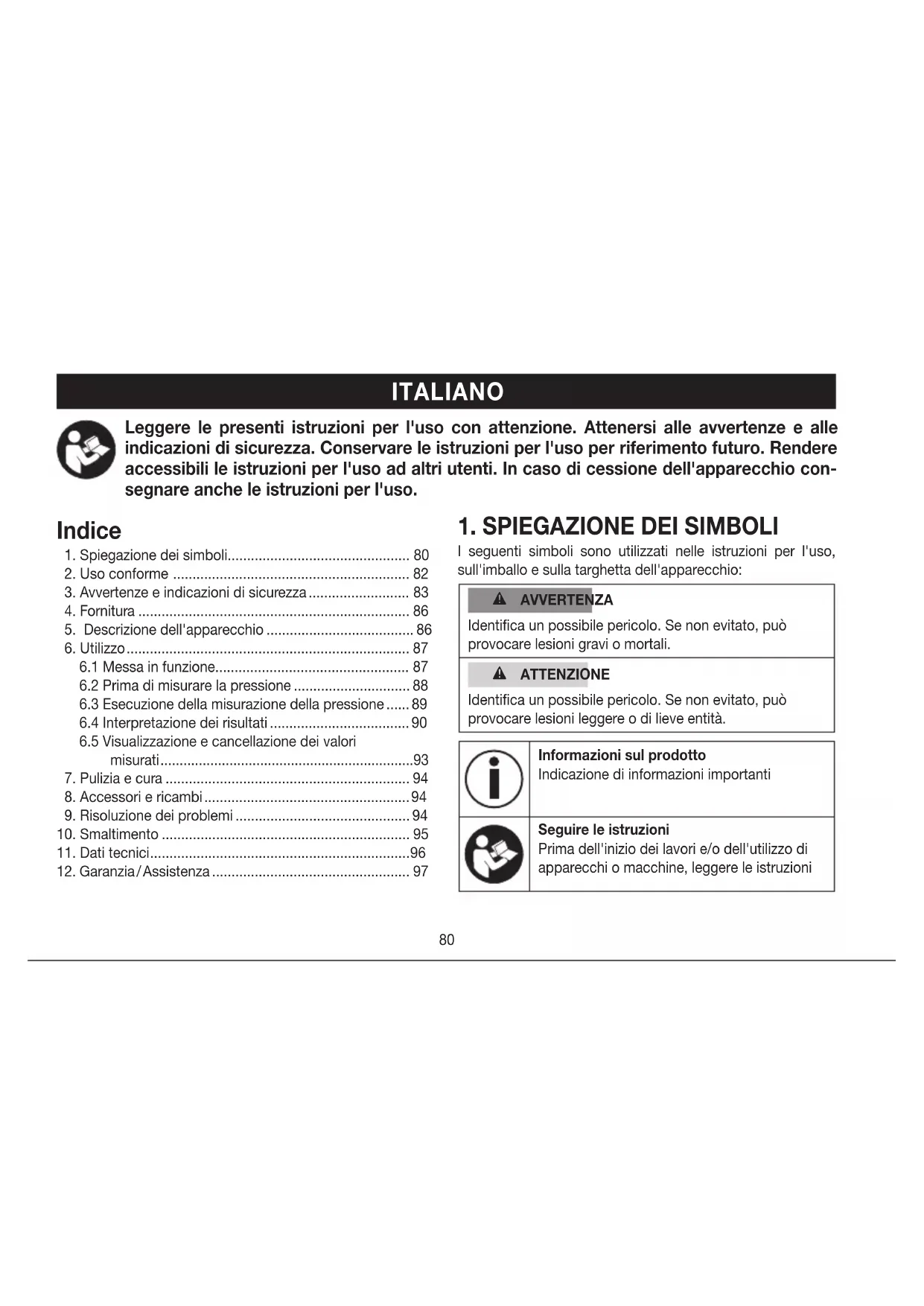 Misuratore di pressione da braccio Istruzioni per l‘uso................80