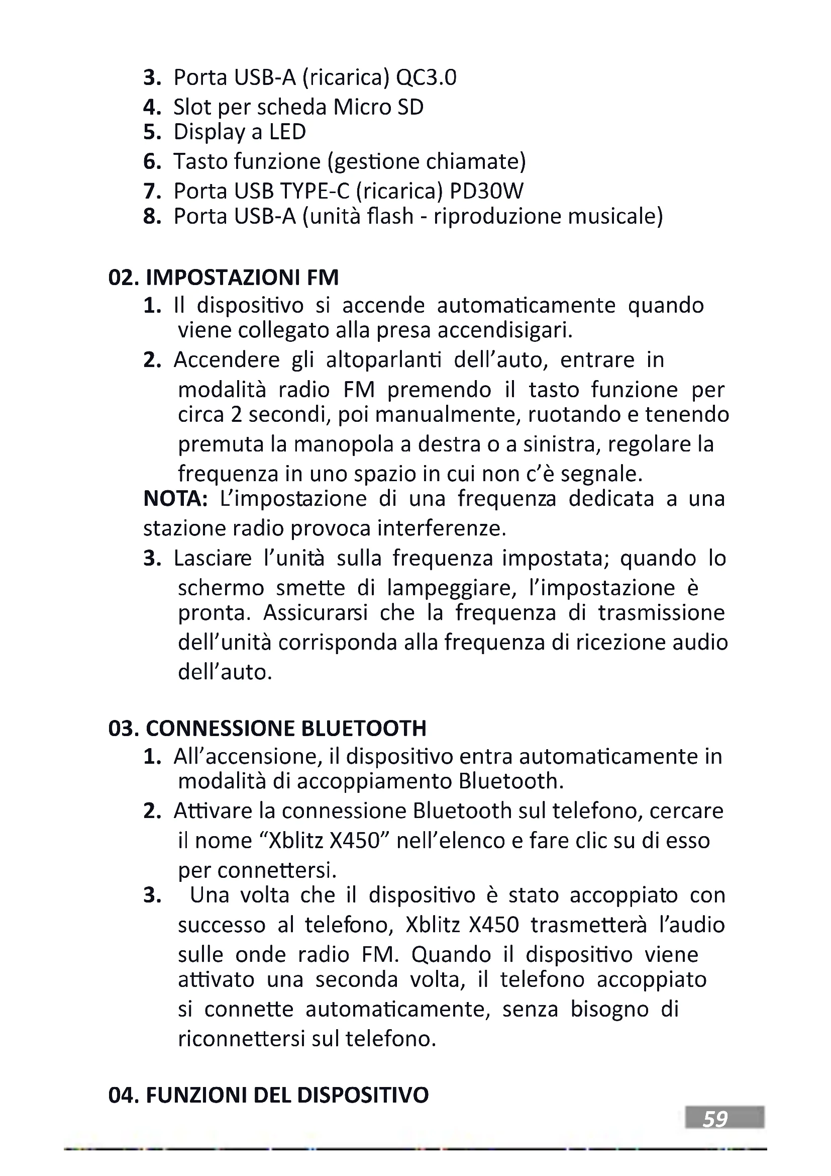 successo al telefono, Xblitz X450 trasmeerà l’audio sulle onde radio FM. Quando il disposivo viene avato una seconda volta, il telefono accoppiato si connee automacamente, senza bisogno di riconneersi sul telefono.