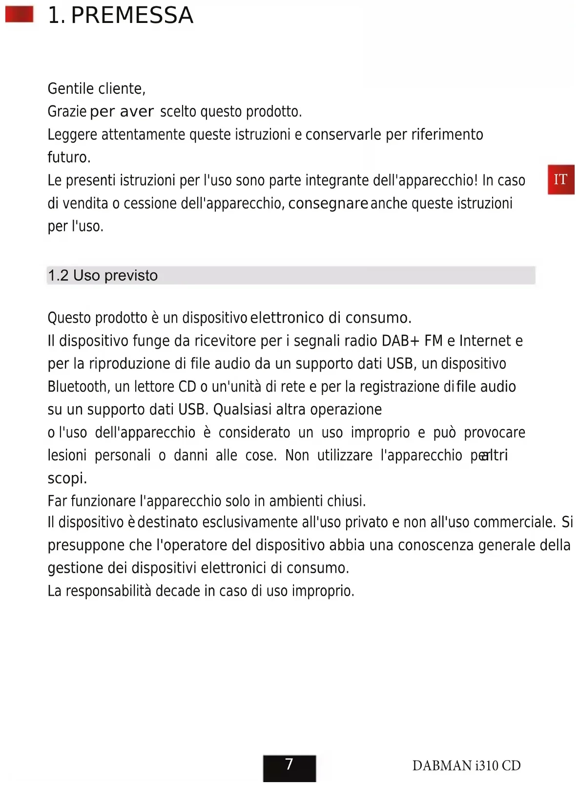 MANUALE UTENTE DABMAN i310 CD Imperial