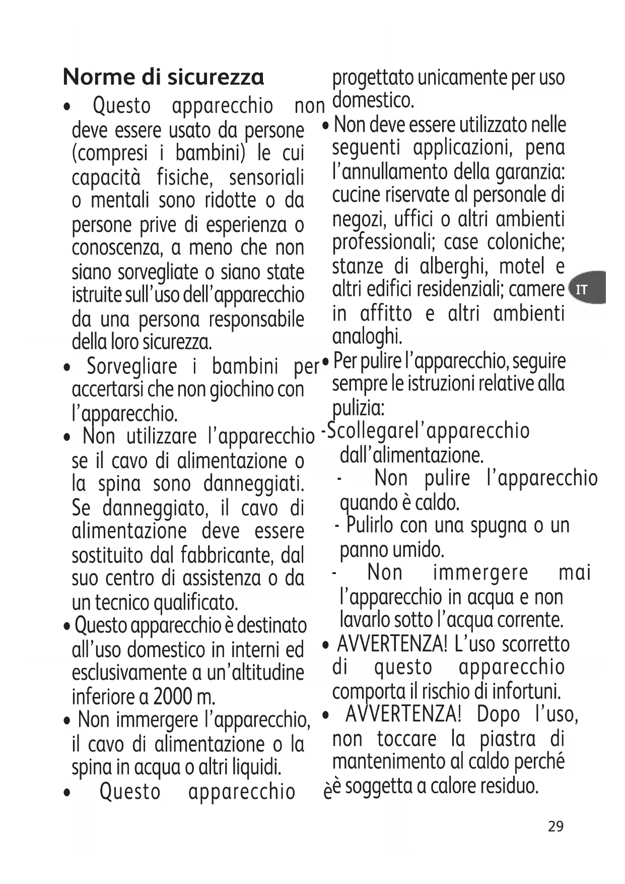 - AVVERTENZA! Dopo l’uso, non toccare la piastra di mantenimento al caldo perché è soggetta a calore residuo.30