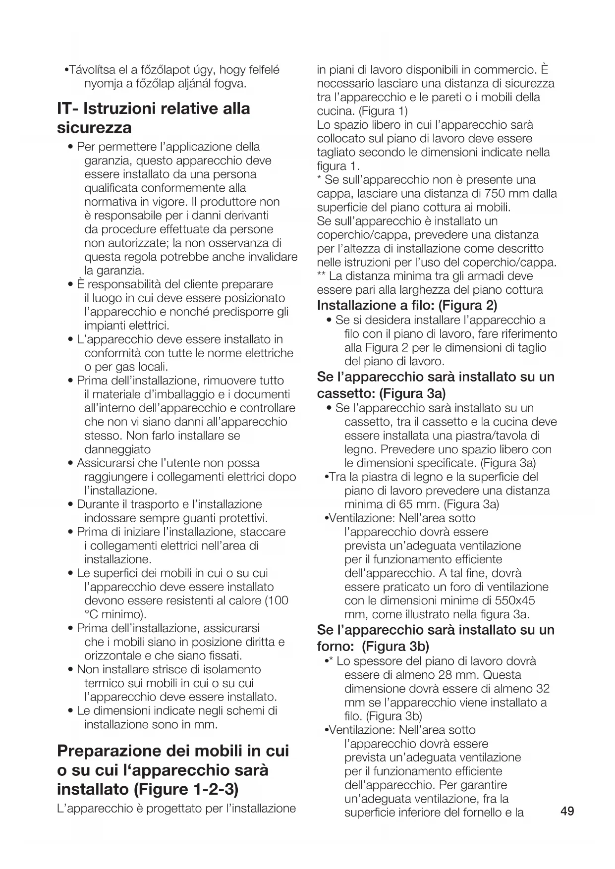 - * Lo spessore del piano di lavoro dovrà essere di almeno 28 mm. Questa dimensione dovrà essere di almeno 32 mm se l’apparecchio viene installato a filo. (Figura 3b)