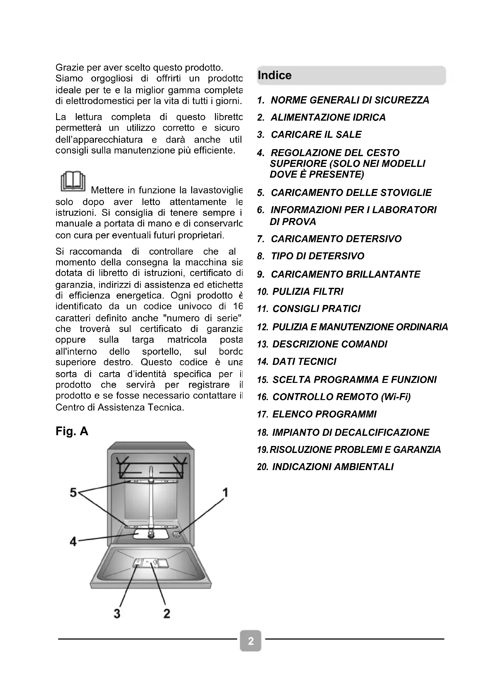 Mettere in funzione la lavastoviglie solo dopo aver letto attentamente le istruzioni. Si consiglia di tenere sempre il manuale a portata di mano e di conservarlo con cura per eventuali futuri proprietari.