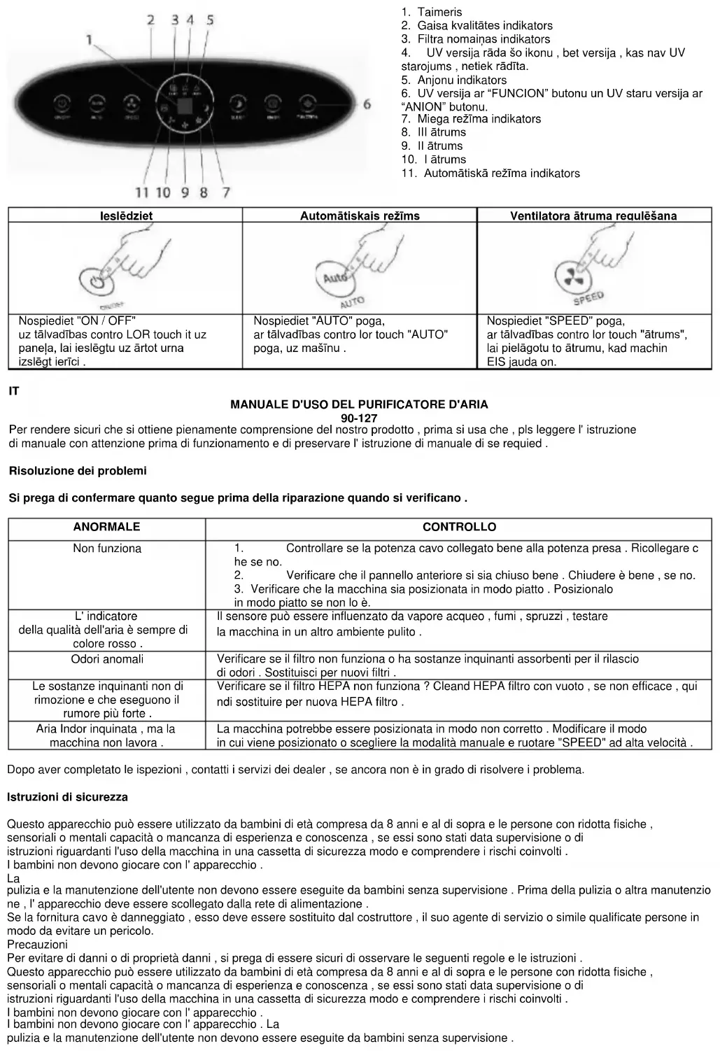 90-127 Per rendere sicuri che si ottiene pienamente comprensione del nostro prodotto , prima si usa che , pls leggere l' istruzione di manuale con attenzione prima di funzionamento e di preservare l' istruzione di manuale di se requied . Risoluzione dei problemi Si prega di confermare quanto segue prima della riparazione quando si verificano . ANORMALE CONTROLLO Non funziona
