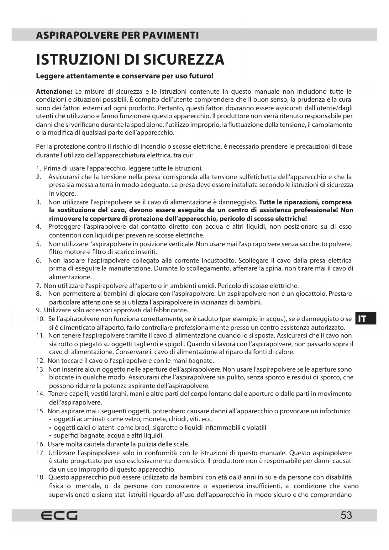 17. Utilizzare l’aspirapolvere solo in conformità con le istruzioni di questo manuale. Questo aspirapolvere