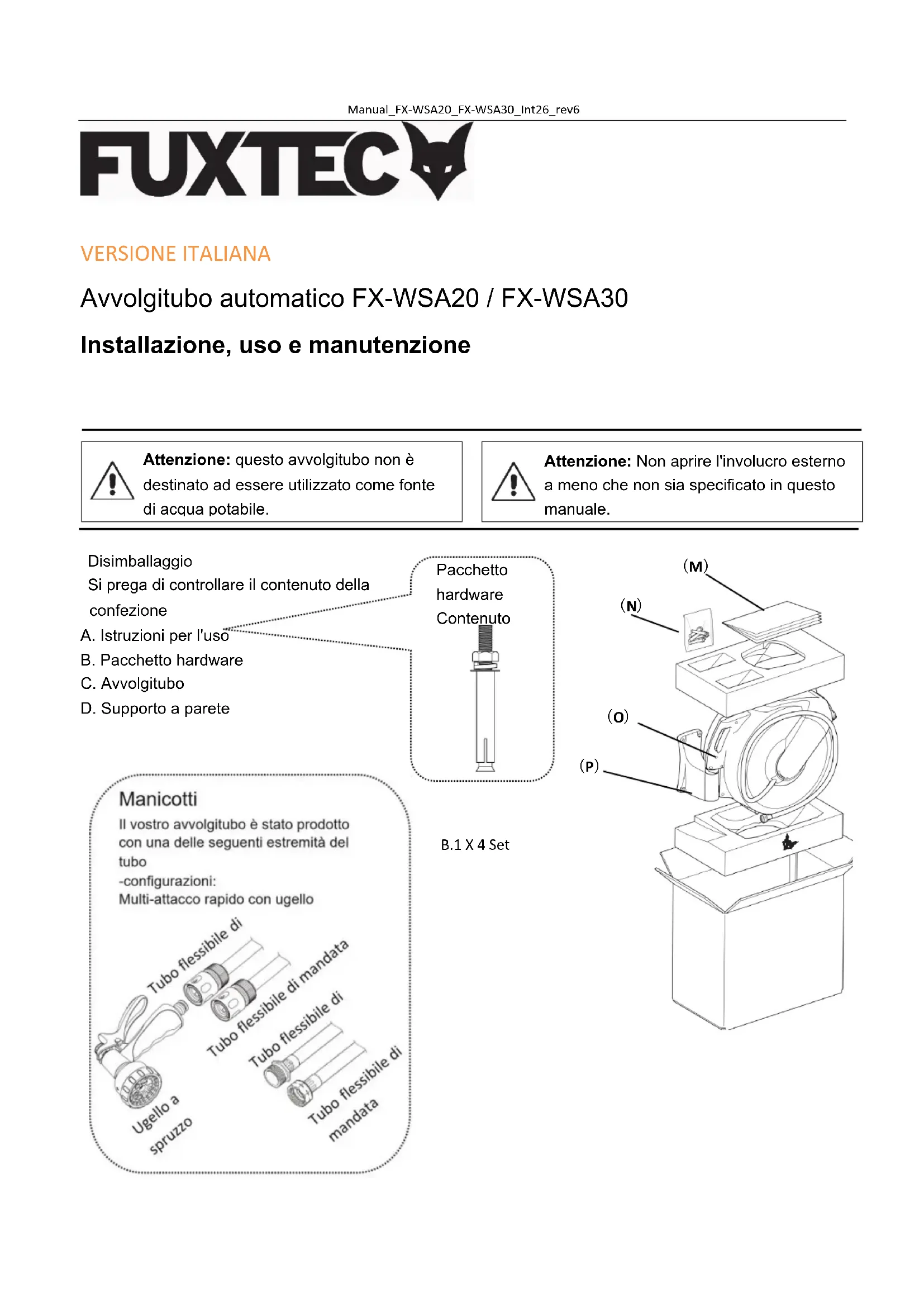 VERSIONE ITALIANA Avvolgitubo automatico FX-WSA20 / FX-WSA30 Installazione, uso e manutenzione