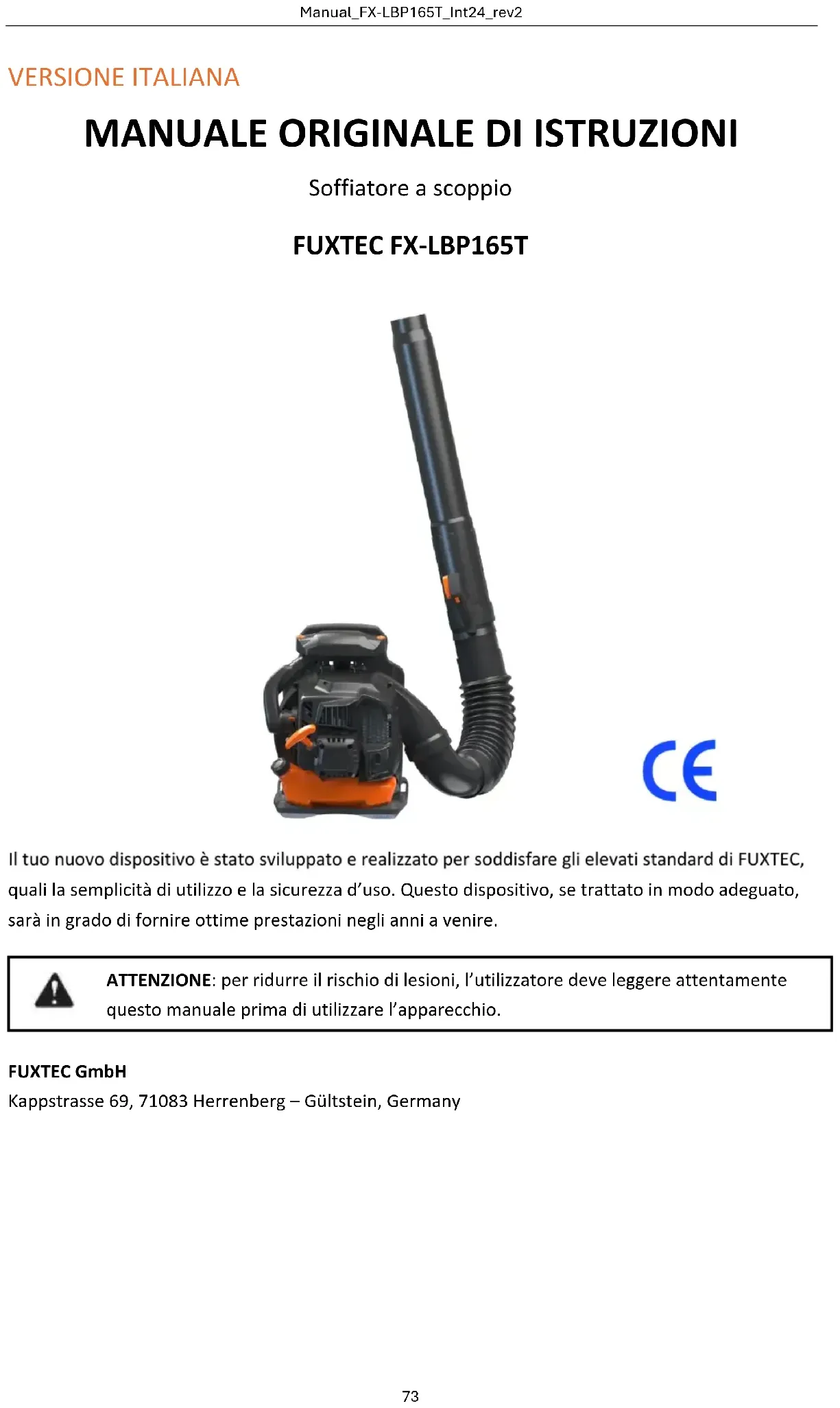 Conservazione della documentazione tecnica: FUXTEC GmbH, Kappstraße 69, 71083 Herrenberg, Germany L. Zirkler, Amministratore DelegatoManual_FX-LBP165T_Int24_rev2