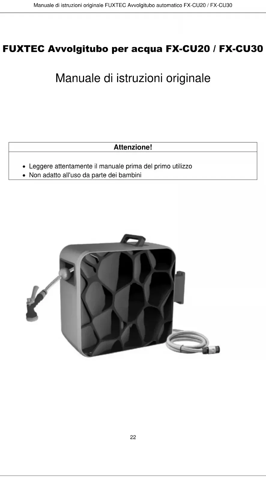 - Non adatto all'uso da parte dei bambiniManuale di istruzioni originale FUXTEC Avvolgitubo automatico FX-CU20 / FX-CU30
