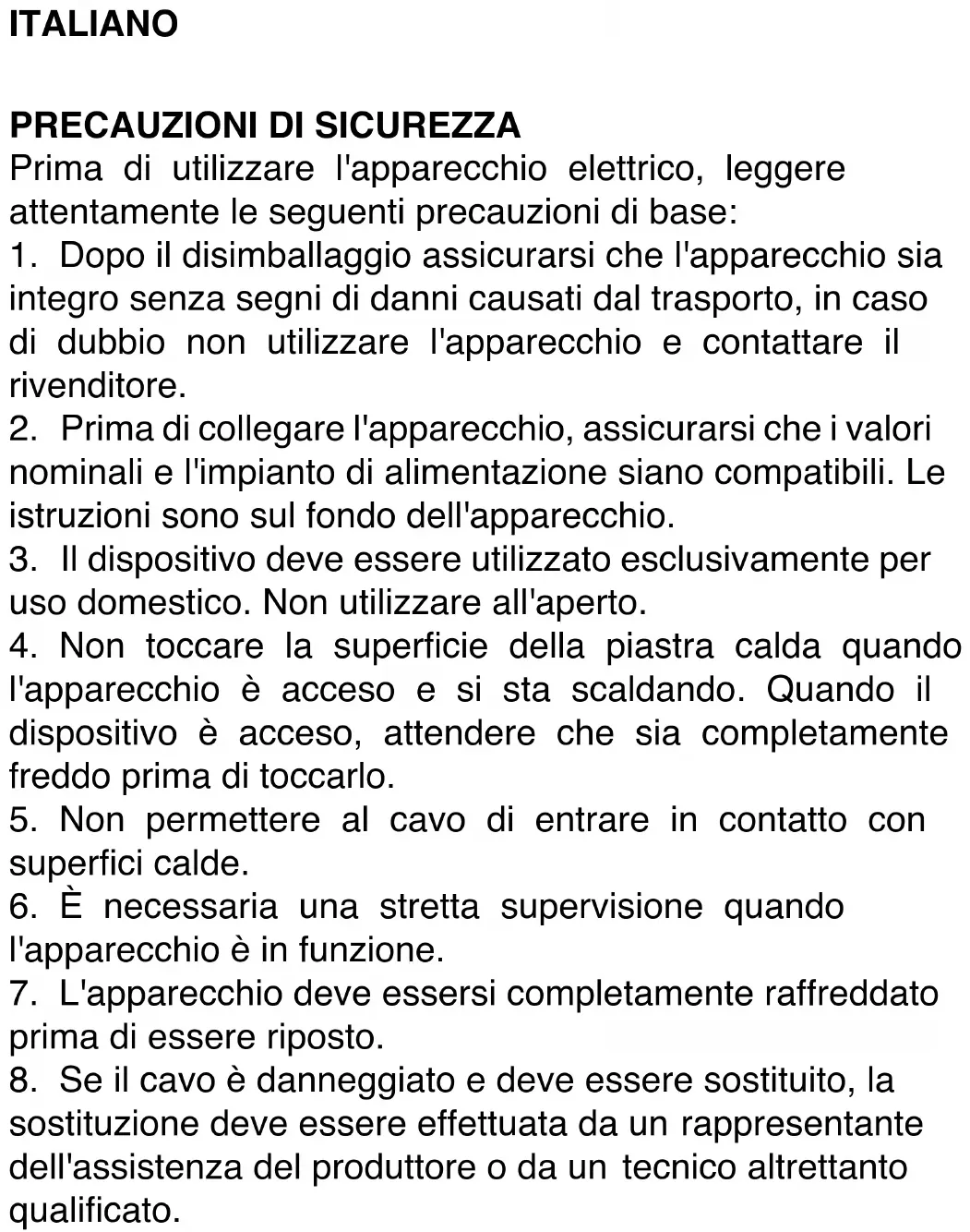 Prima di utilizzare l'apparecchio elettrico, leggere attentamente le seguenti precauzioni di base: