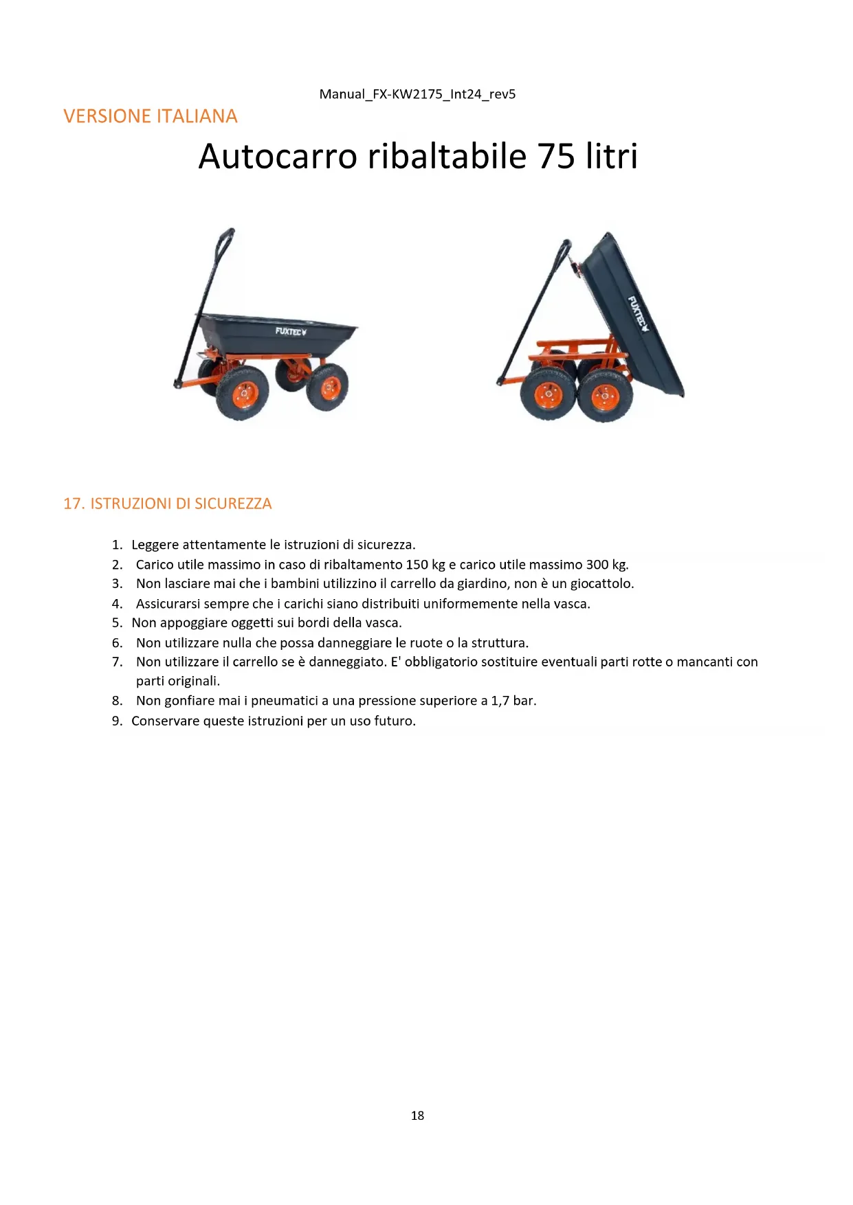 Il carico utile in caso di ribaltamento non supera i 150 kg e il carico utile massimo 300 kg.Manual_FX-KW2175_Int24_rev5