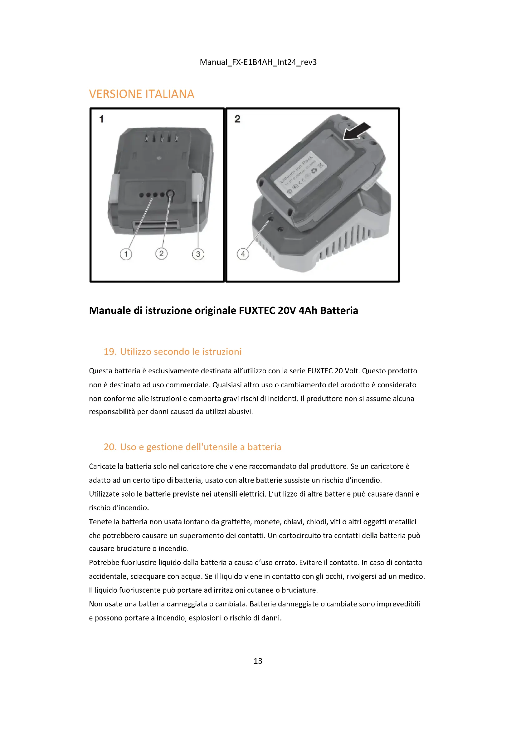 Manuale di istruzione originale FUXTEC 20V 4Ah Batteria