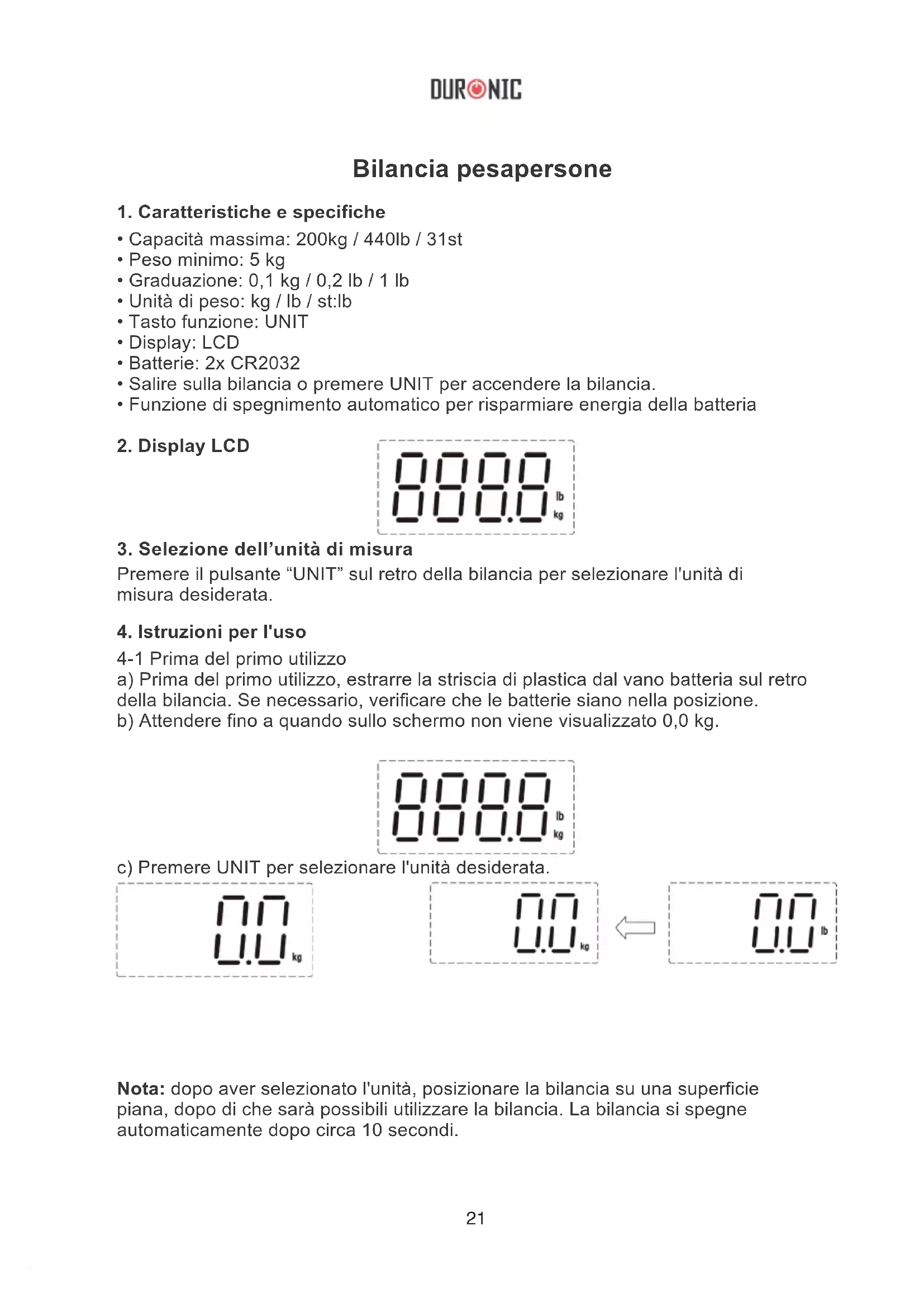 BS204 - Bilance Duronic - Manuale utente e istruzioni gratuiti