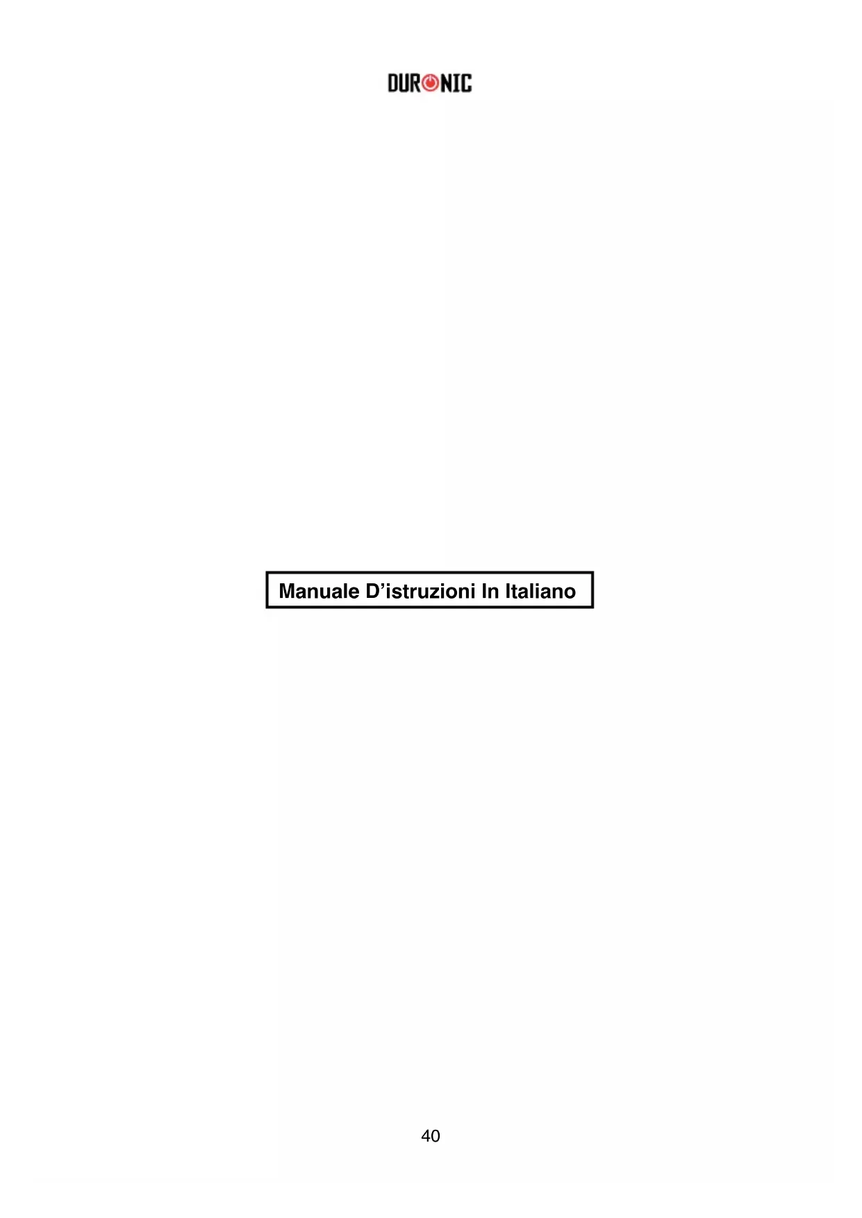 Non cercare mai di sostituire le parti e riparare l'unità da soli. Non modificare l'prodotto in alcun modo che non sia descritto nelle istruzioni per l'uso. L'prodotto contiene parti sotto tensione. Le riparazioni possono essere effettuate solo da Duronic, utilizzando ricambi e accessori originali. Se è necessario un cavo di prolunga per raggiungere l'prodotto a una presa di corrente troppo lontana dalla portata del cavo di accompagnamento dell'prodotto , assicurarsi che: - La valutazione elettrica marcata del cavo di prolunga è almeno pari a quella elettrica dell'prodotto . - Il cavo di prolunga è del tipo a terra. - Nessun altro prodotto è collegato allo stesso cavo di prolunga.