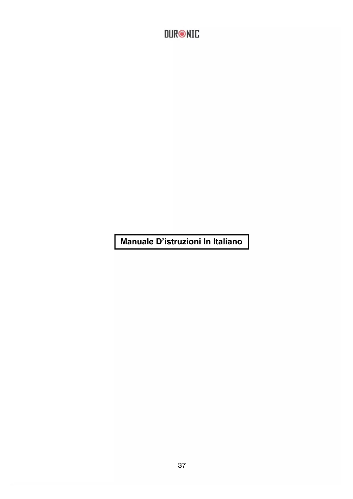 Questo prodotto è garantito per una durata determinata con il distributore a partire dalla data di acquisto contro ogni difetto derivante da difetti di fabbricazione o dei materiali. Questa garanzia non copre difetti o danni derivanti da installazione impropria, uso improprio o usura anomala del prodotto. L’apparecchio deve essere restituito nella sua confezione originale e accompagnato dalla ricevuta e deve essere stato utilizzato in modo corretto. È importante rispettare le istruzioni per l’uso e le precauzioni di sicurezza indicate di seguito. Inoltre, non possiamo garantire l’apparecchio se è stato modicato o riparato dall’acquirente o da terzi. 1 anno di garanzia da Shine-Mart Ltd, proprietari del marchio commerciale Duronic. NOTA: QUESTE DICHIARAZIONI NON INFLUISCONO SUI DIRITTI LEGALI DEL CONSUMATORE Questo prodotto è stato realizzato con le rigorose procedure del controllo qualità, e utilizzando materiali di altissima qualità, per garantire afdabilità e prestazioni eccellenti. Vi regalerà un servizio ottimo e a lungo termine, purchè venga opportunamente usata e mantenuta. Il prodotto è garantito per 1 anno dalla data di acquisto. Se sorge qualche difetto a causa di materiali difettosi o scarsa manodopera, il prodotto difettoso dovrà essere restituito al luogo originale di acquisto. Il rimborso o la sostituzione sono a discrezione dell’azienda. I prodotti Duronic offrono 1 anno di garanzia alle seguenti condizioni: