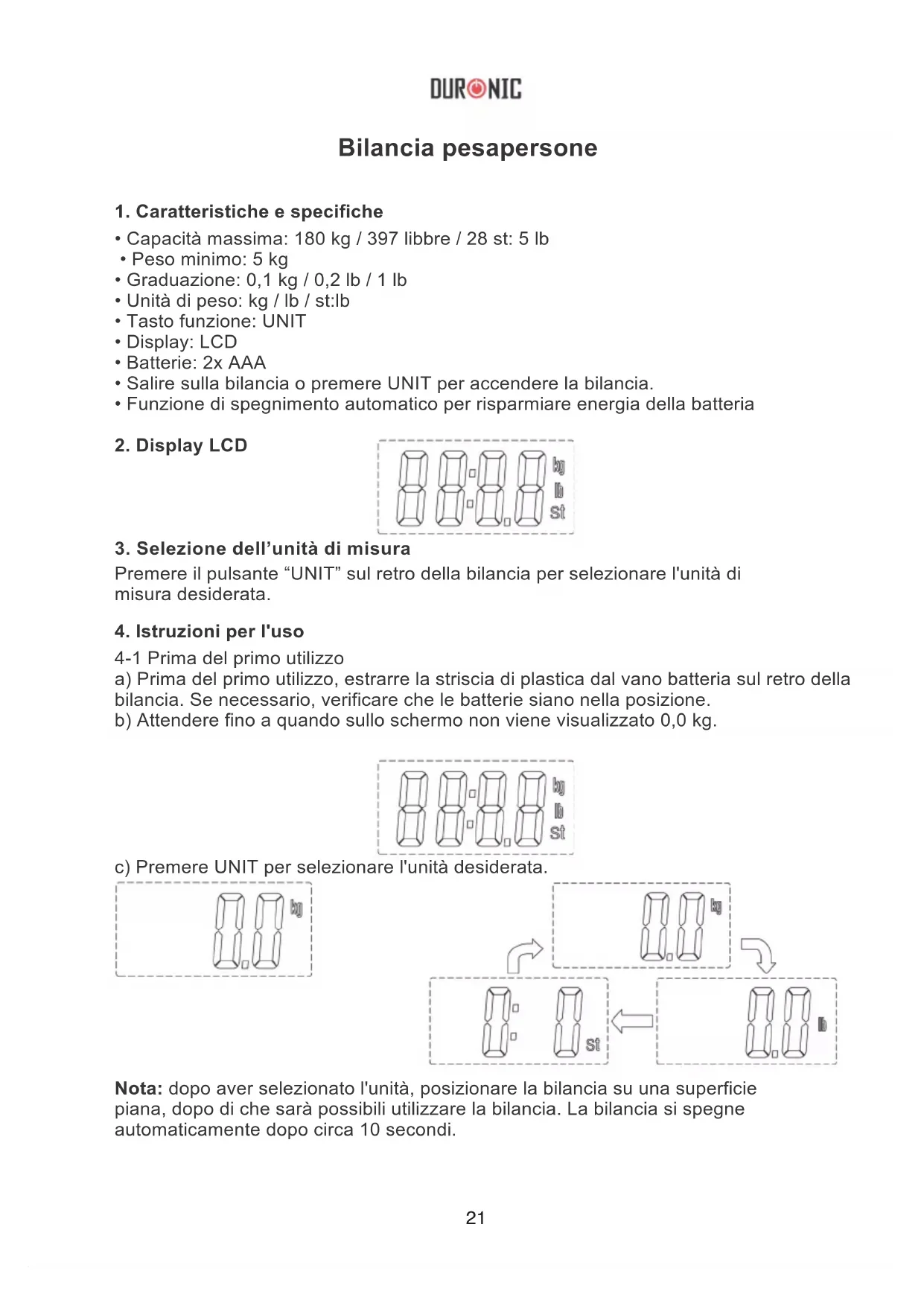 BS303 - Bilance Duronic - Manuale utente e istruzioni gratuiti
