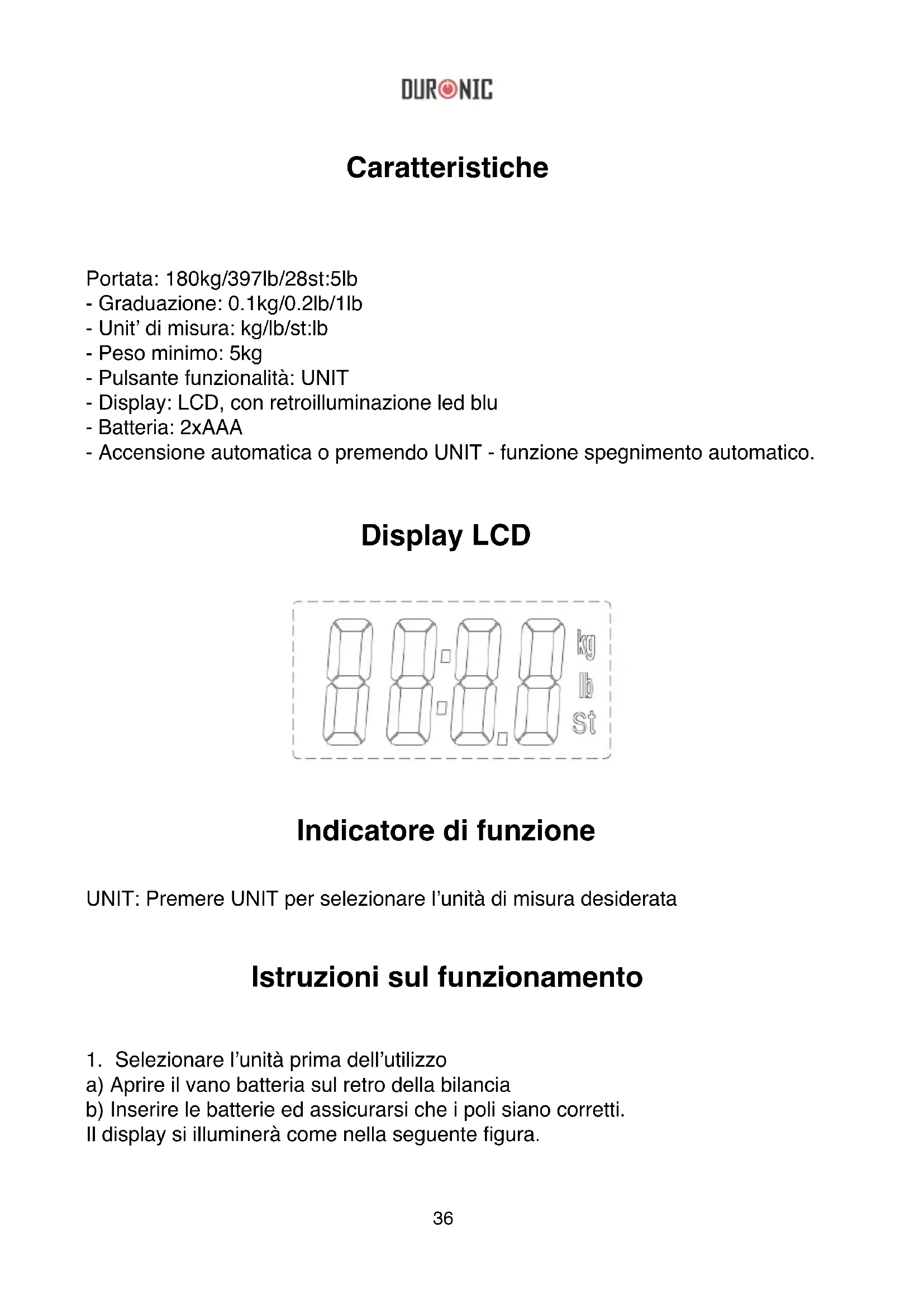 BS601 - Bilance Duronic - Manuale utente e istruzioni gratuiti