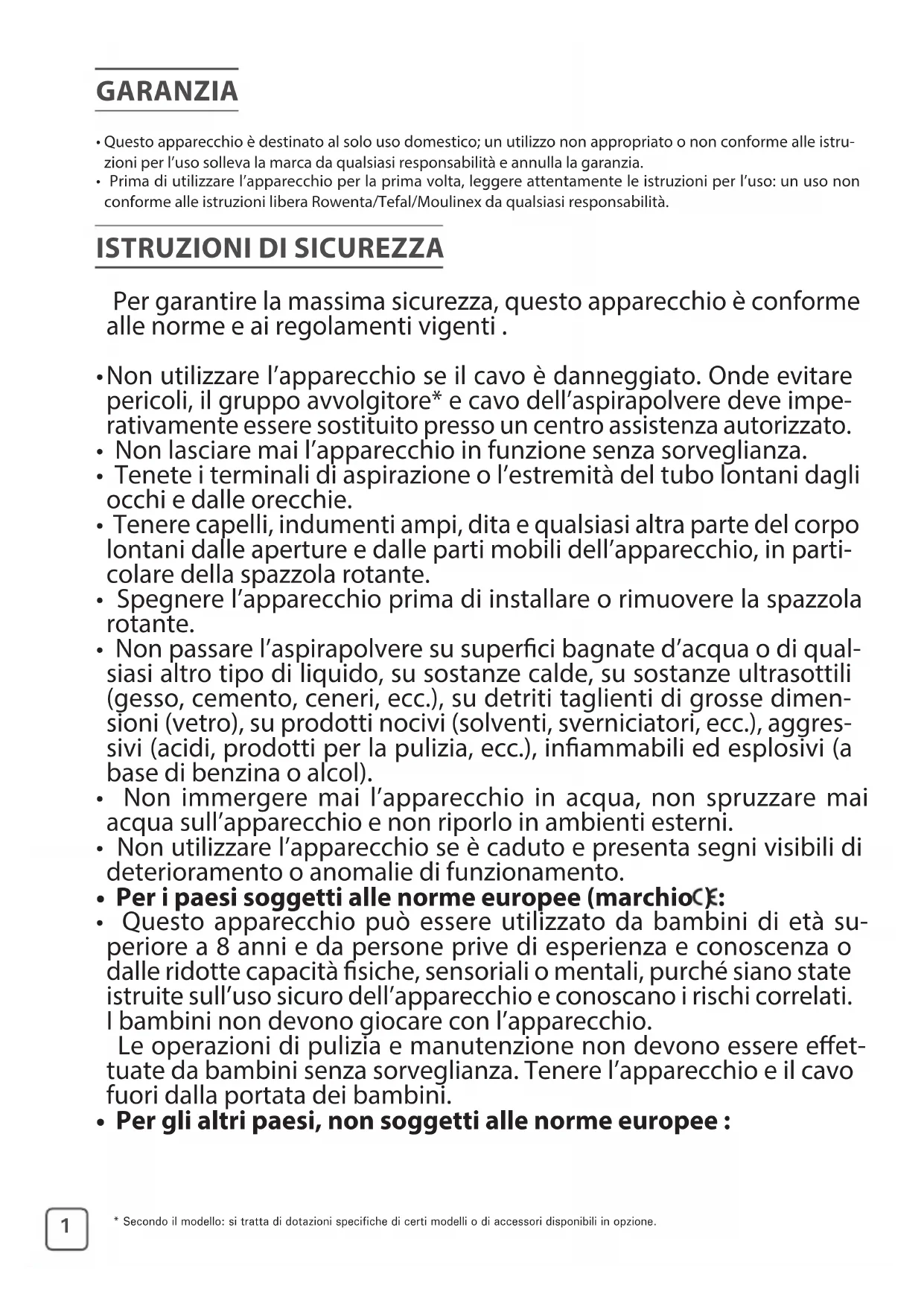- Prima di utilizzare l’apparecchio per la prima volta, leggere attentamente le istruzioni per l’uso: un uso non conforme alle istruzioni libera Rowenta/Tefal/Moulinex da qualsiasi responsabilità.