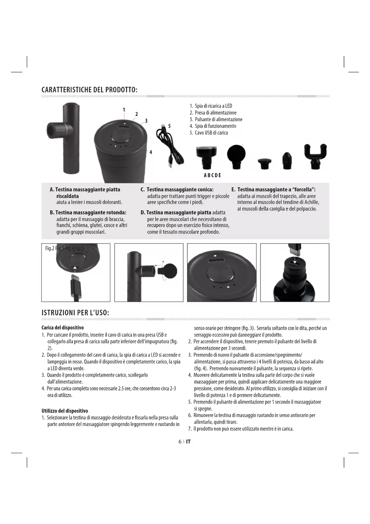A B C D E 7 I IT6 I IT Utilizzando la testina massaggiante piatta riscaldata La testina massaggiante piatta riscaldata si riscalda in soli 15 secondi, ideale per aiutare a lenire i muscoli indolenziti.