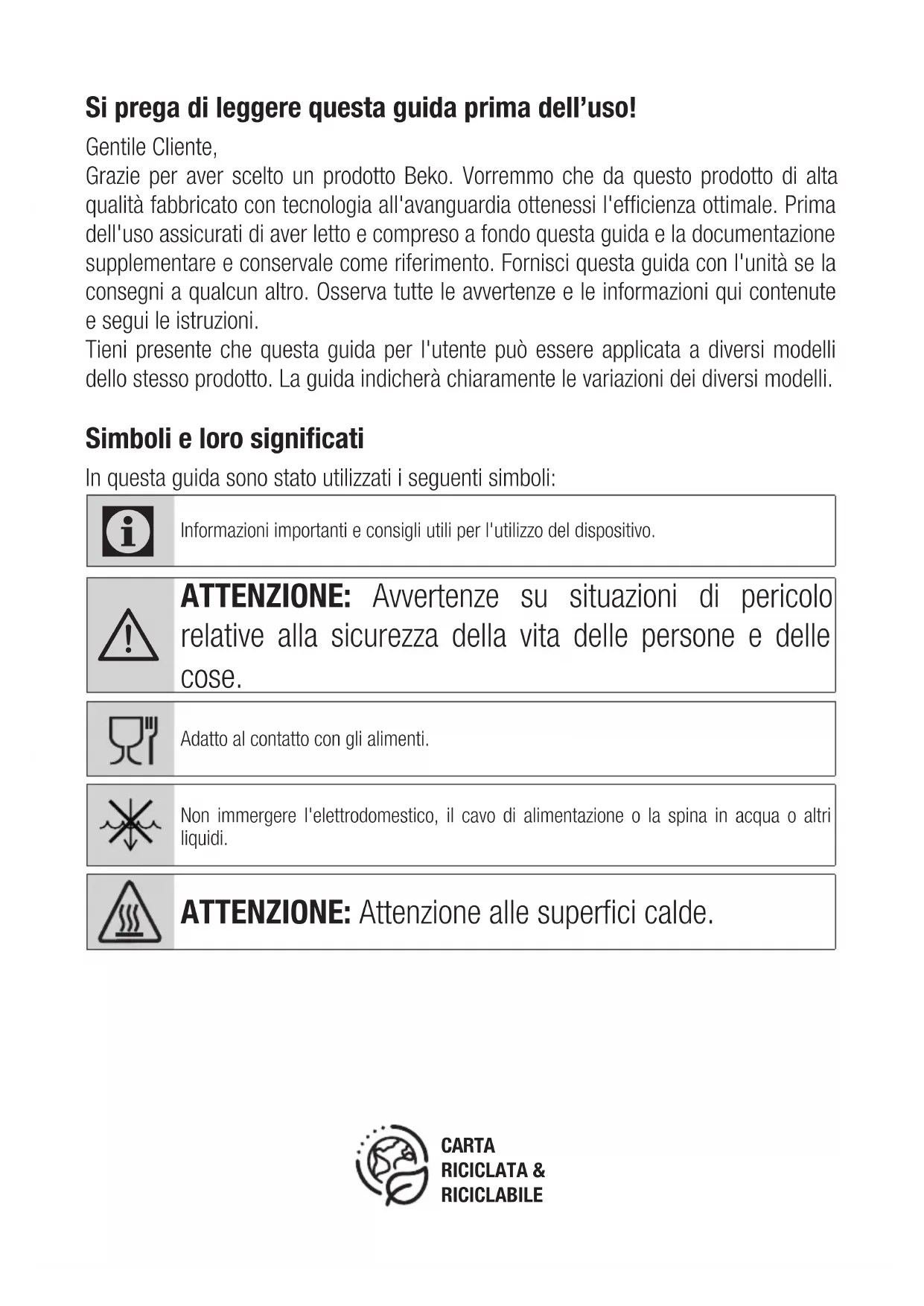 7. BEKO declina ogni responsabilità per eventuali danni che possano derivare, direttamente od