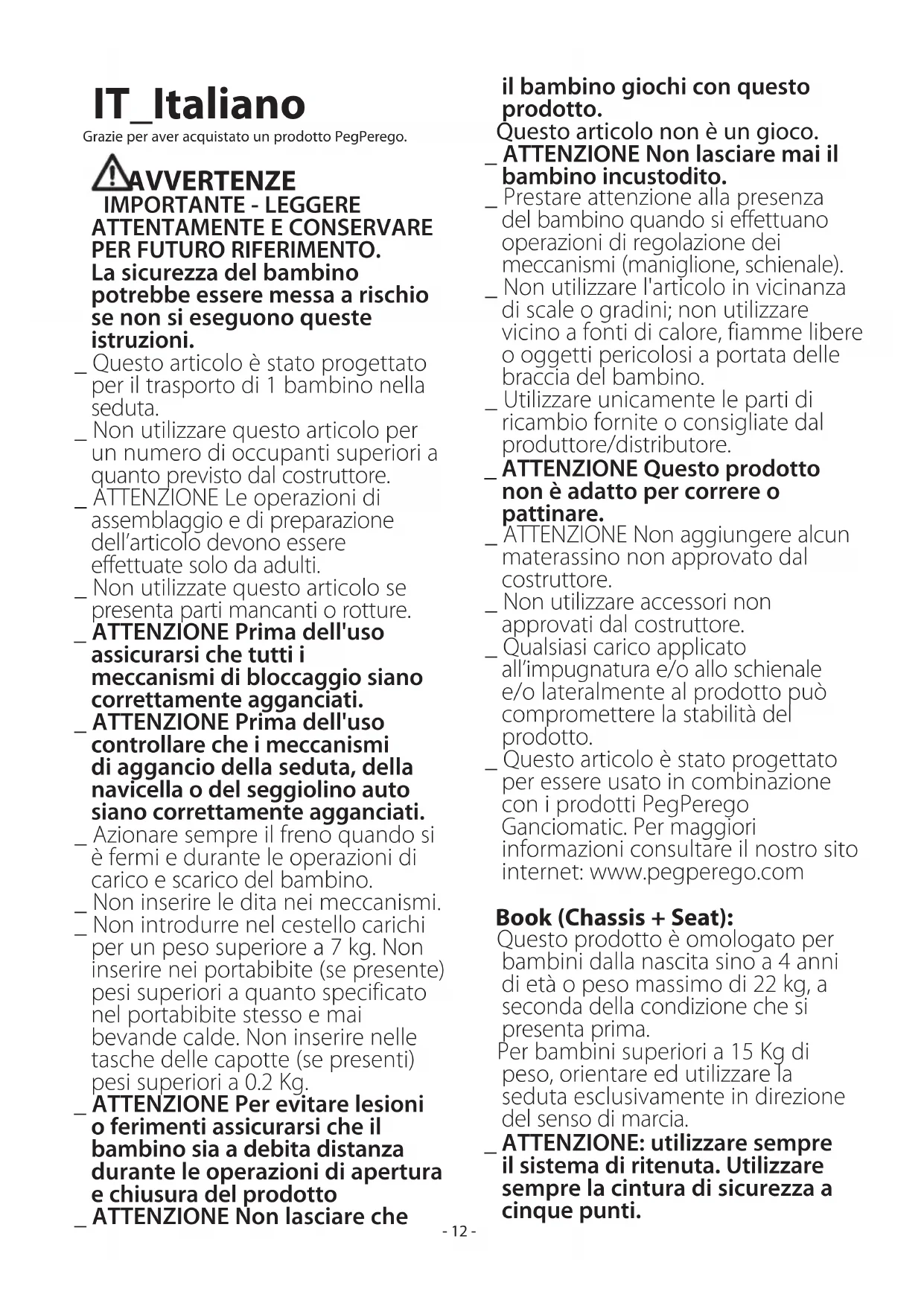IT_Italiano Grazie per aver acquistato un prodotto PegPerego. AVVERTENZE