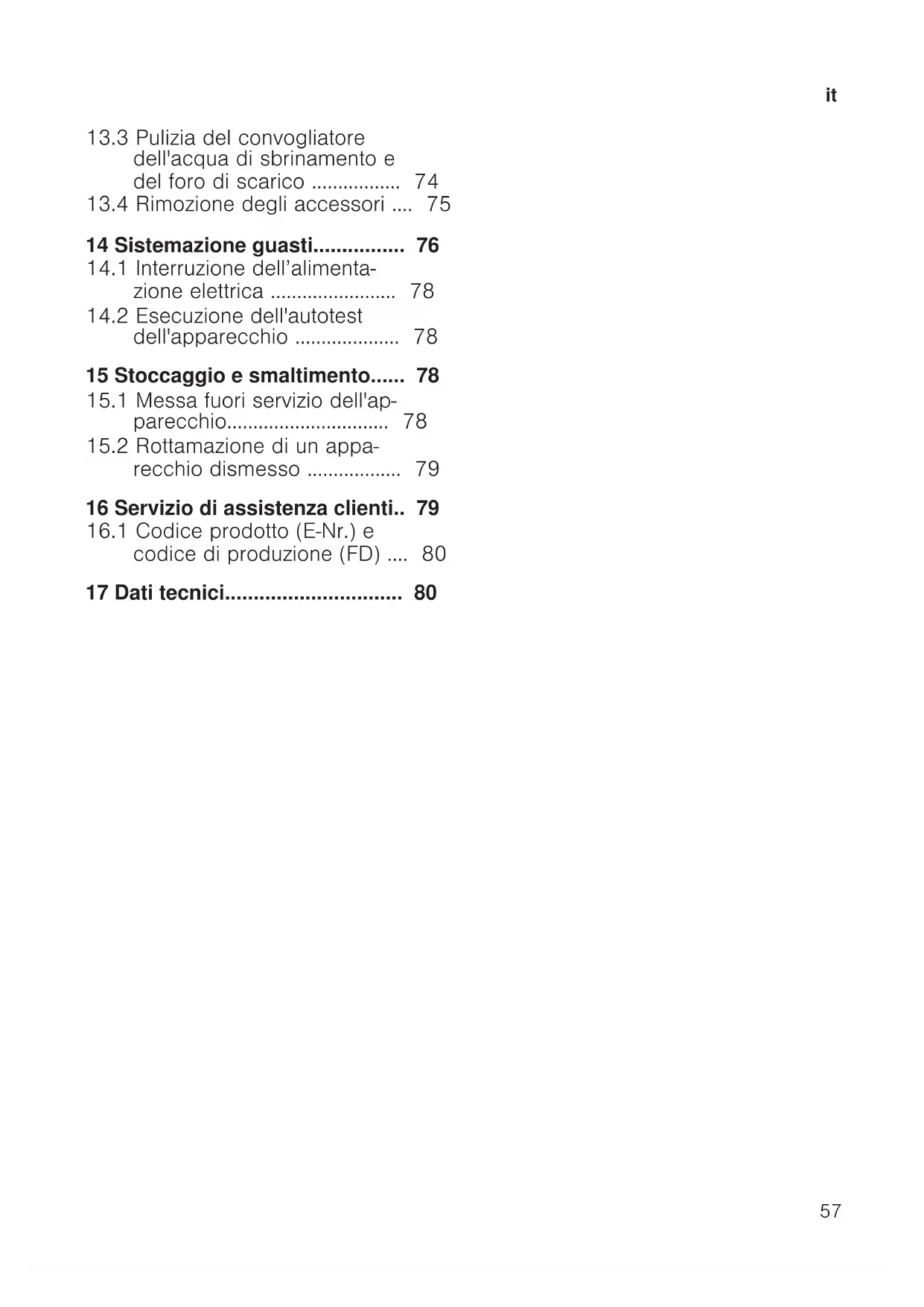 - Pagina 71 13 Pulizia e cura Per mantenere a lungo l'apparecchio in buone condizioni, sottoporlo a una cura e a una manutenzione scrupolo- se. La pulizia dei punti inaccessibili deve essere effettuata dal servizio di assi- stenza clienti. La pulizia da parte del servizio di assistenza clienti può comportare costi.it Pulizia e cura
