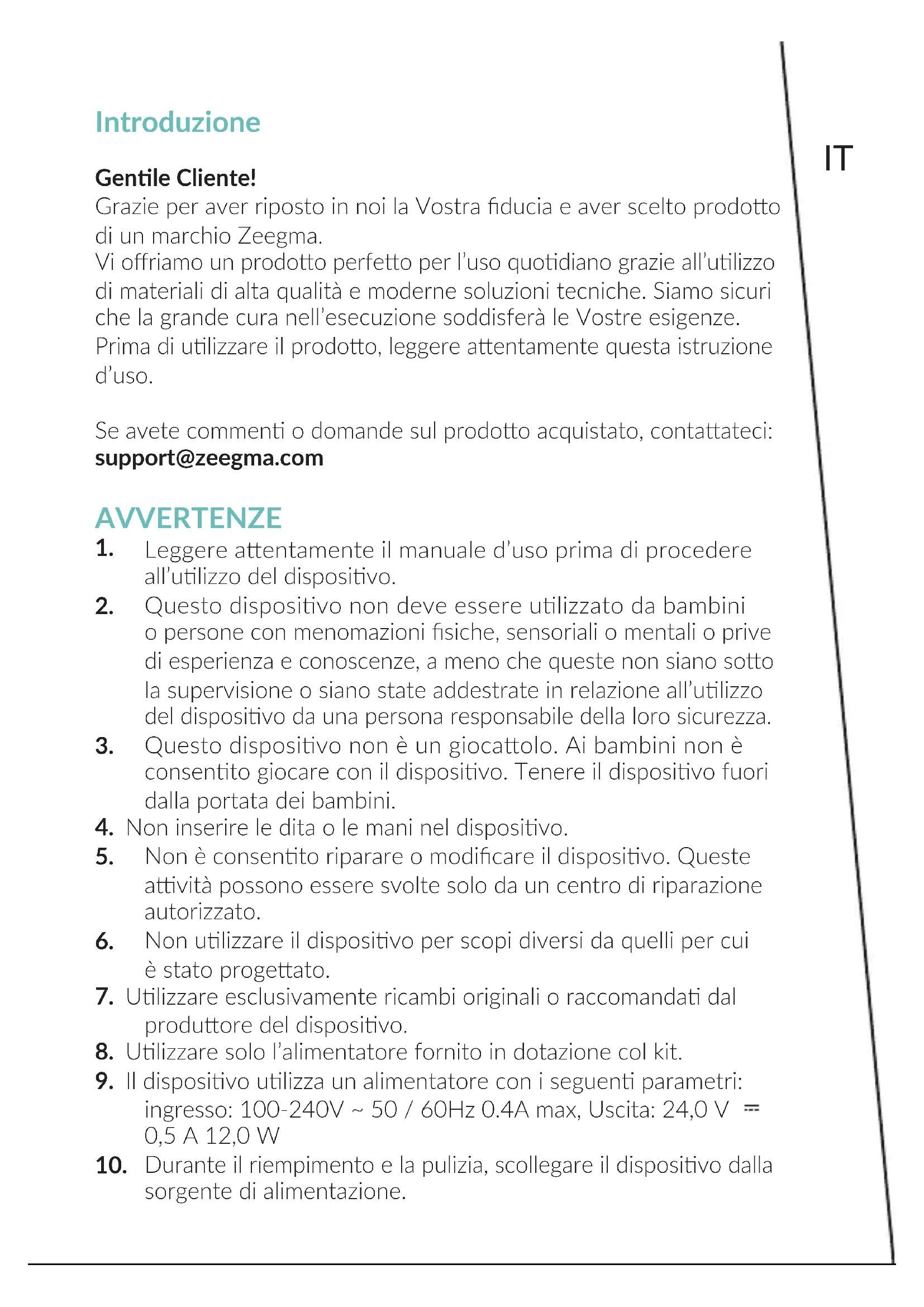 MANUALE UTENTE Aromi Zeegma