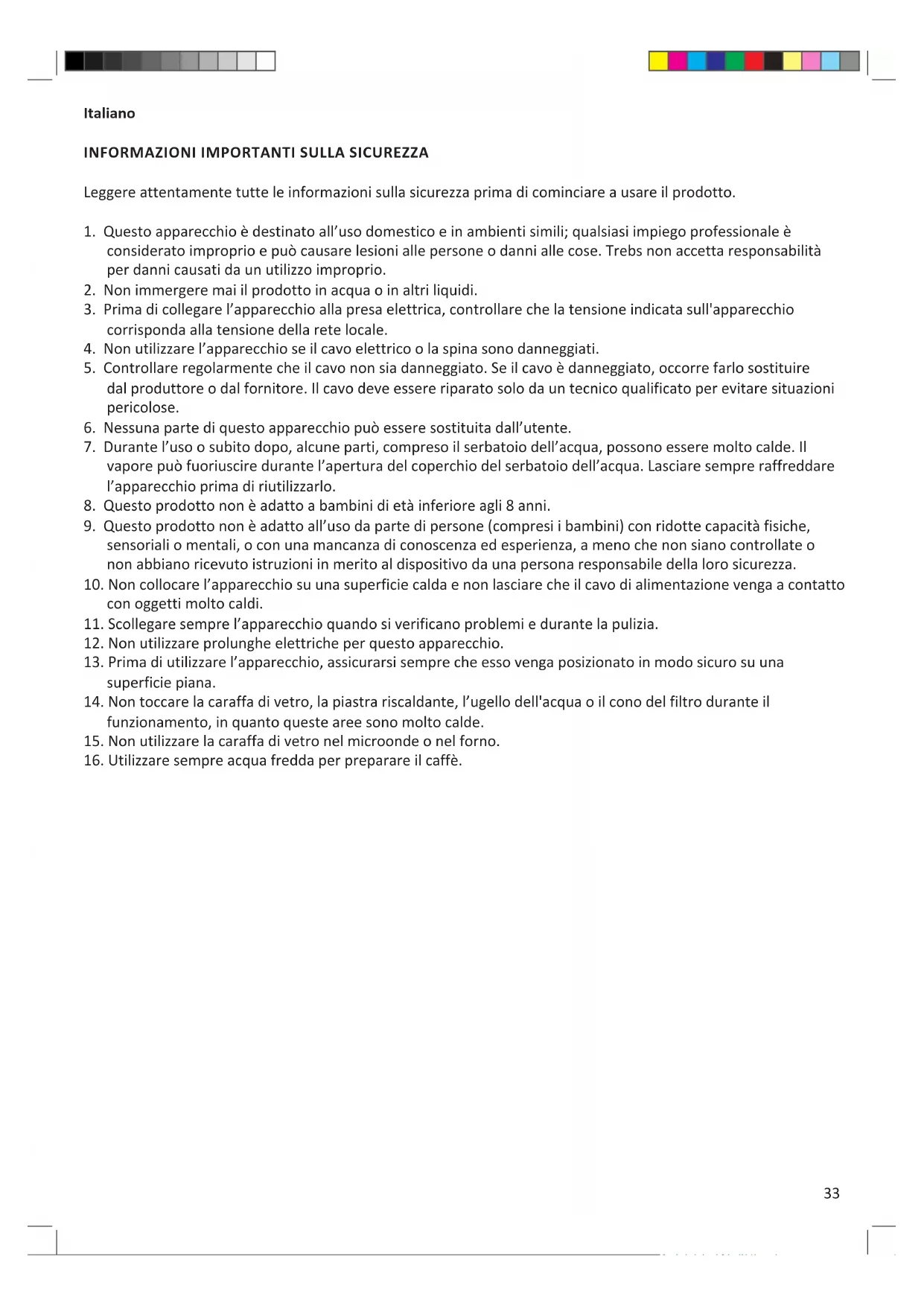 16. Utilizzare sempre acqua fredda per preparare il caffè.34
